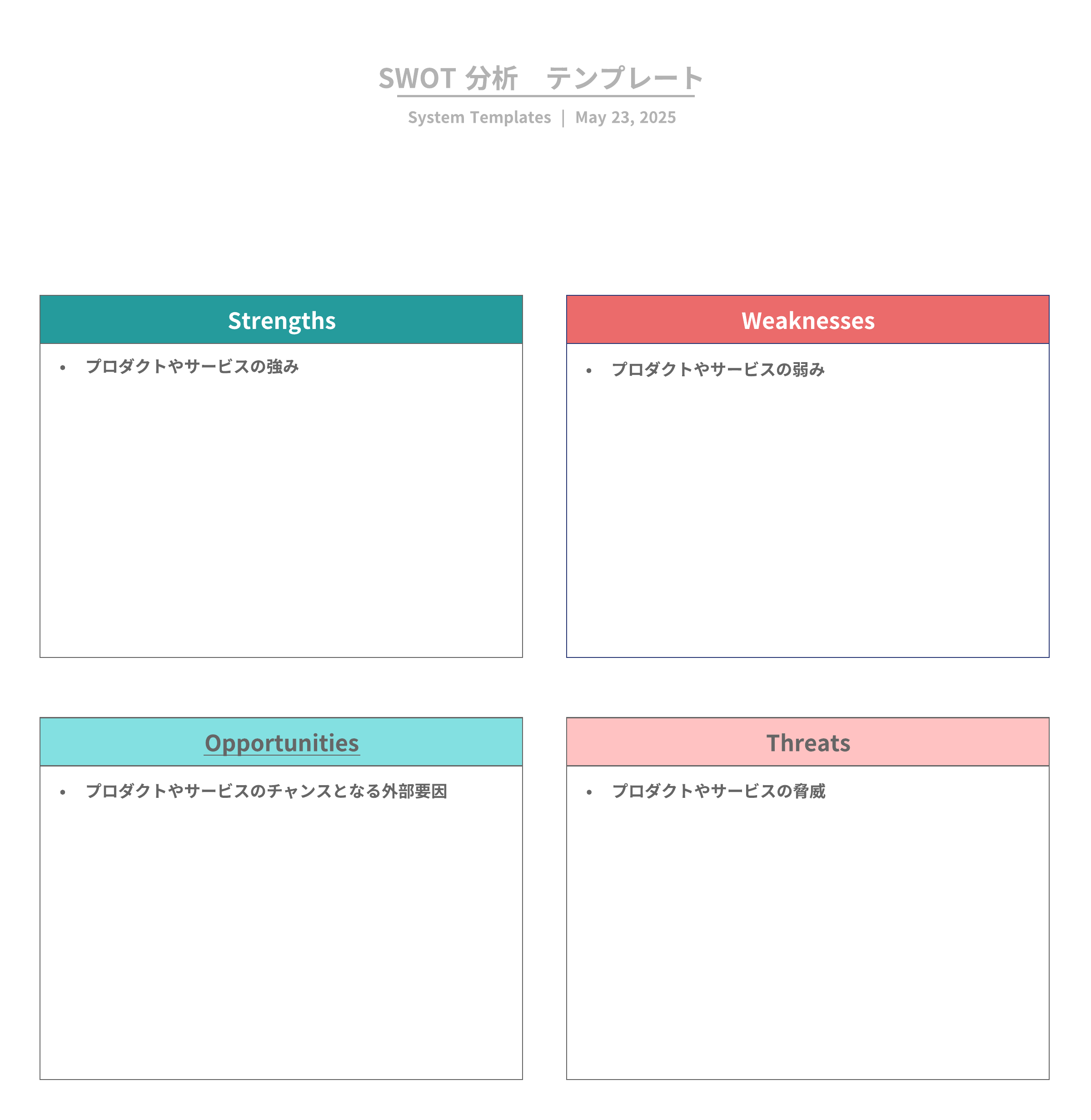 今すぐ使えるSWOT分析テンプレート