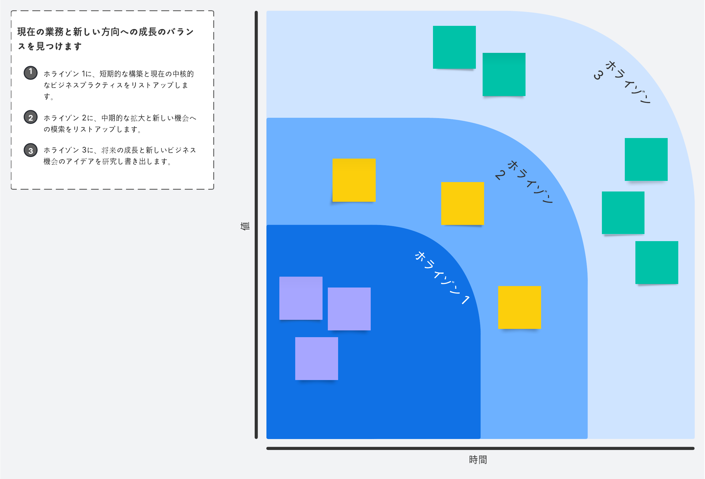 成長モデルの3つのホライゾンを使用して、現在の業務と将来の成長のバランスを見つけます。