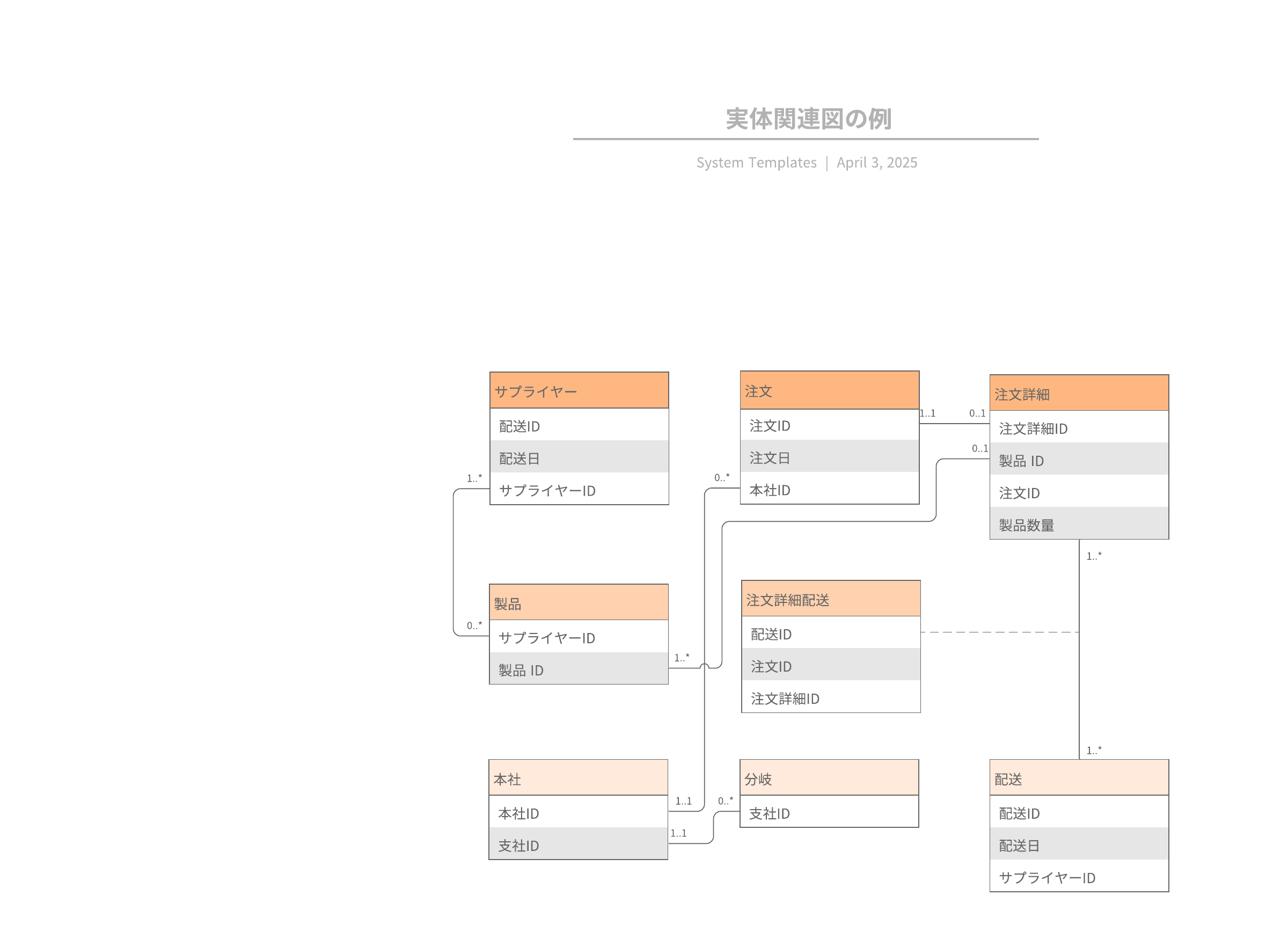 実体関連 (ER) 図は、人、オブジェクト、コンセプトといった「実体」のシステム内での関連を示すフローチャートの一種です。ER 図は、関係データベースの設計やデバッグによく使われます。濃度とは、UML 記法で使われる表現で、2つの実体または実体集合間の関連の数値属性を定義します。