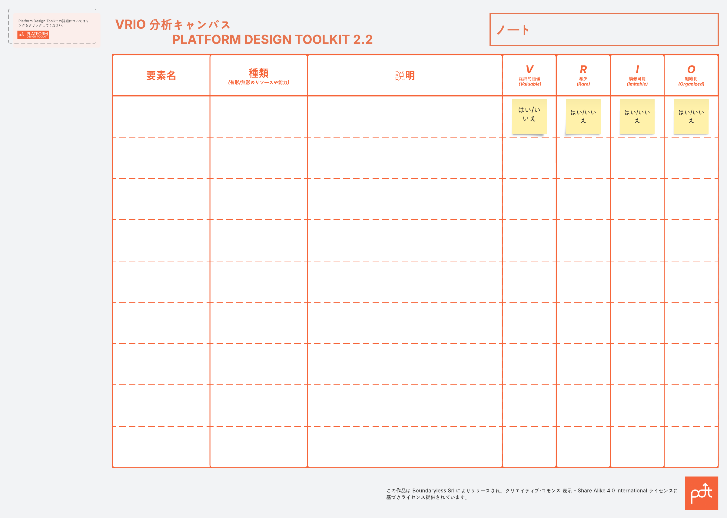 VRIO 分析キャンバス