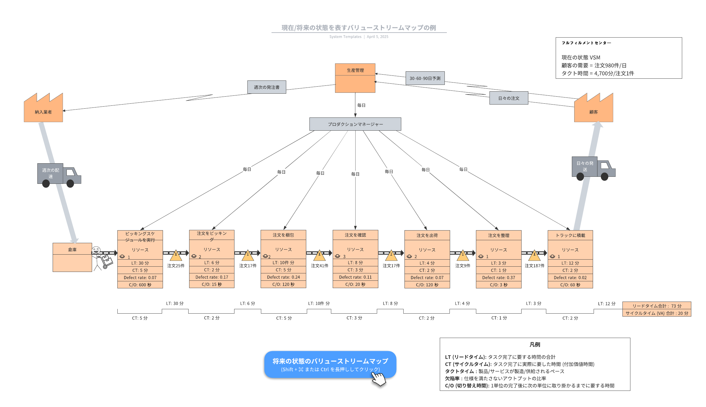 現在/将来の状態を表すバリューストリームマップの例