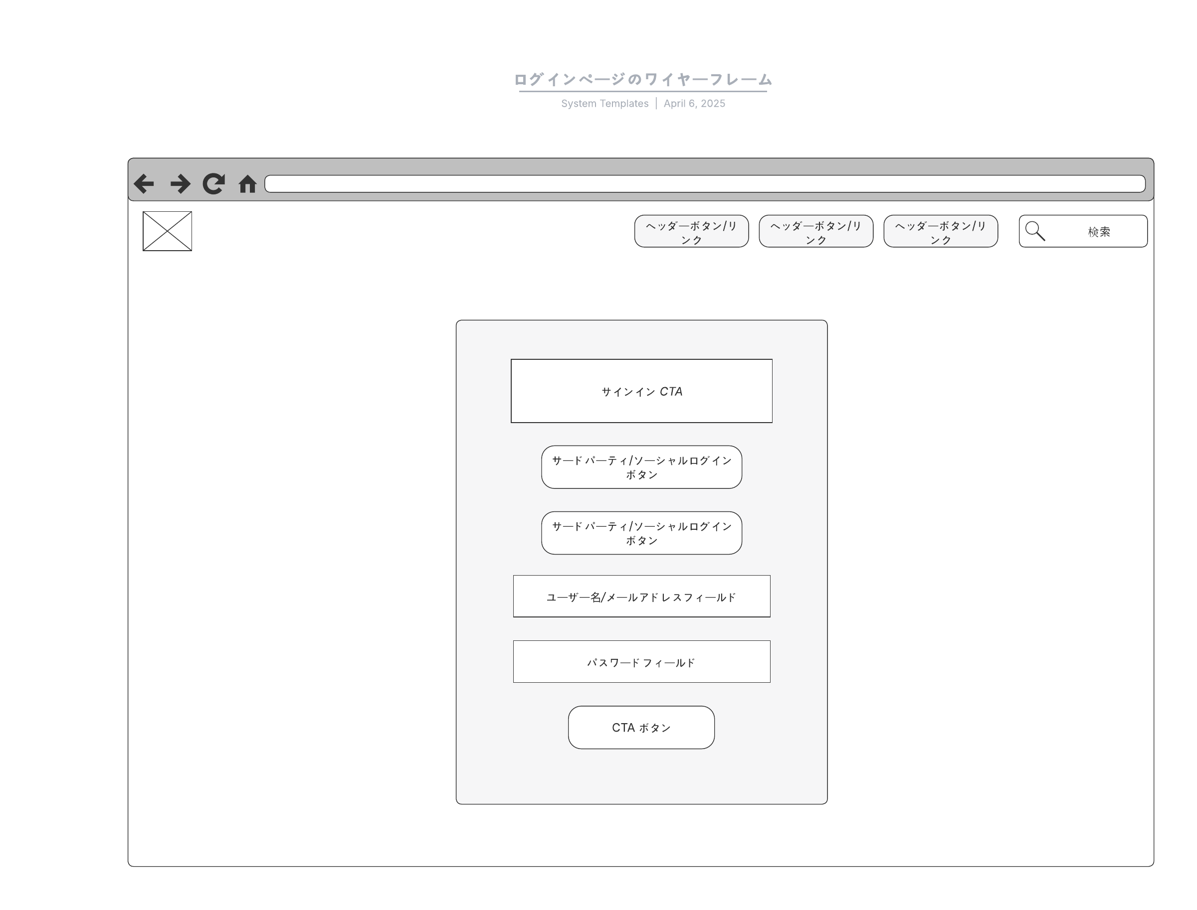 このログインページの基本的なワイヤーフレームテンプレートは以下のような用途に役立ちます。