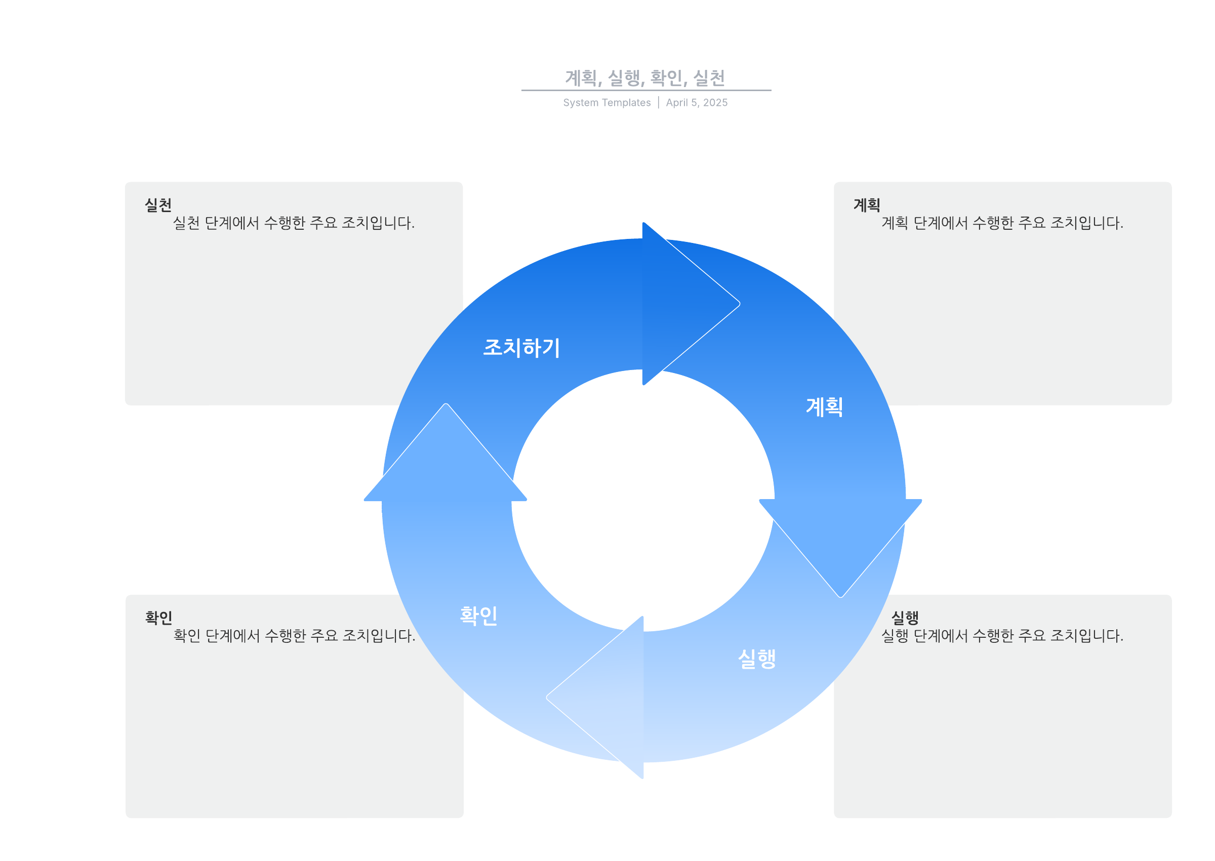 이 템플릿을 열고 내용을 추가하여 이 계획, 실행, 확인, 실천 모델을 사용 사례에 맞춤화하세요.