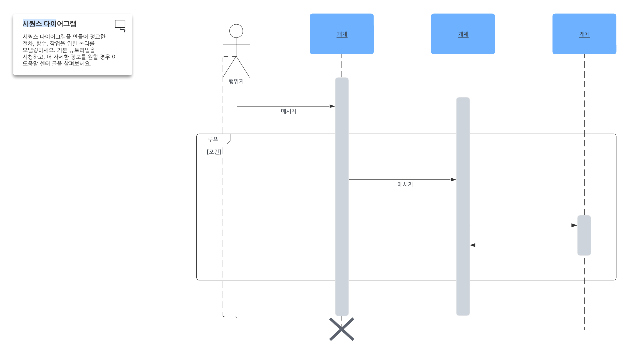템플릿을 열고 내용을 추가해 이 시퀀스 다이어그램을 필요에 맞게 편집하세요.