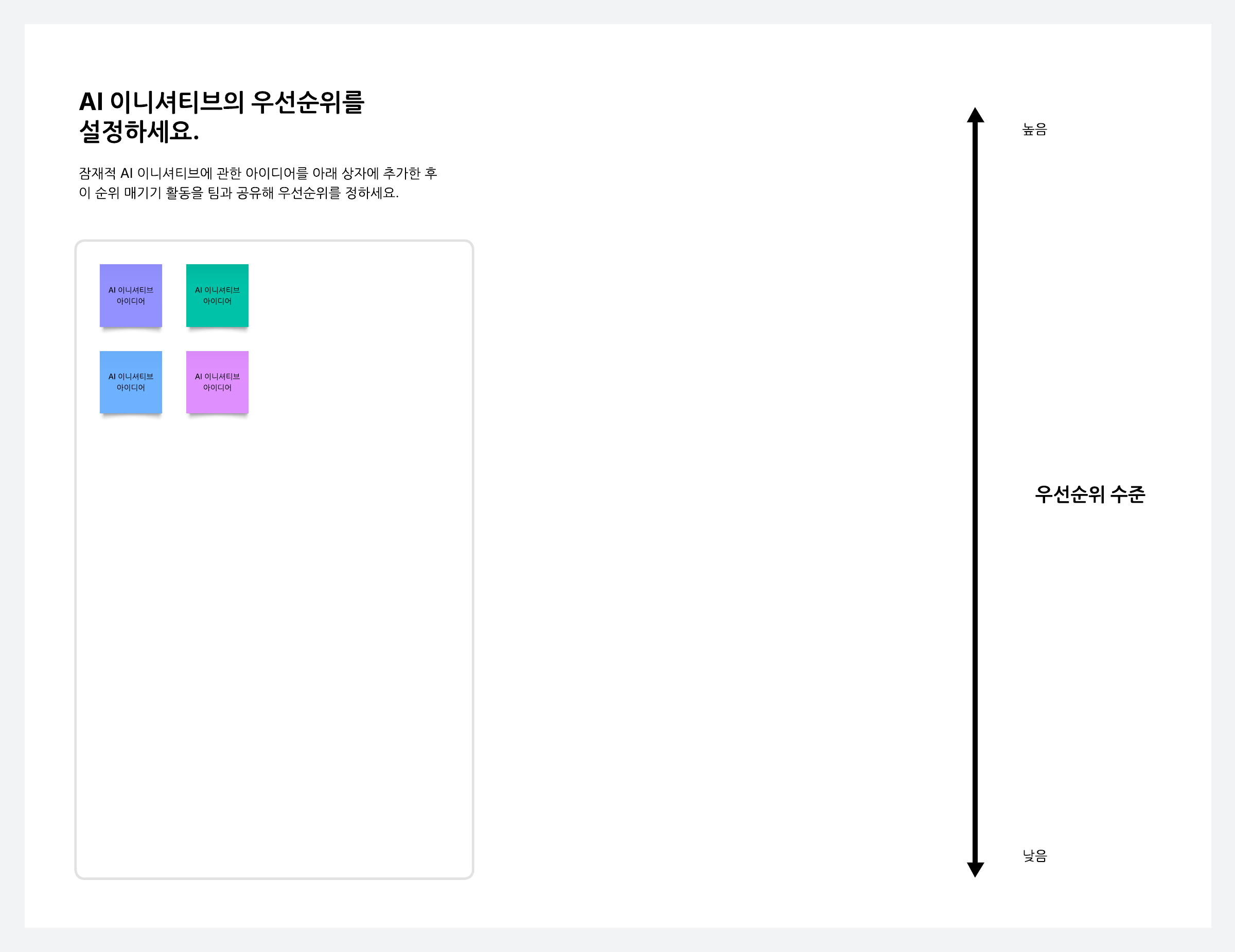 우선순위 척도에서 AI 이니셔티브에 관한 아이디어의 순위를 매겨보세요.