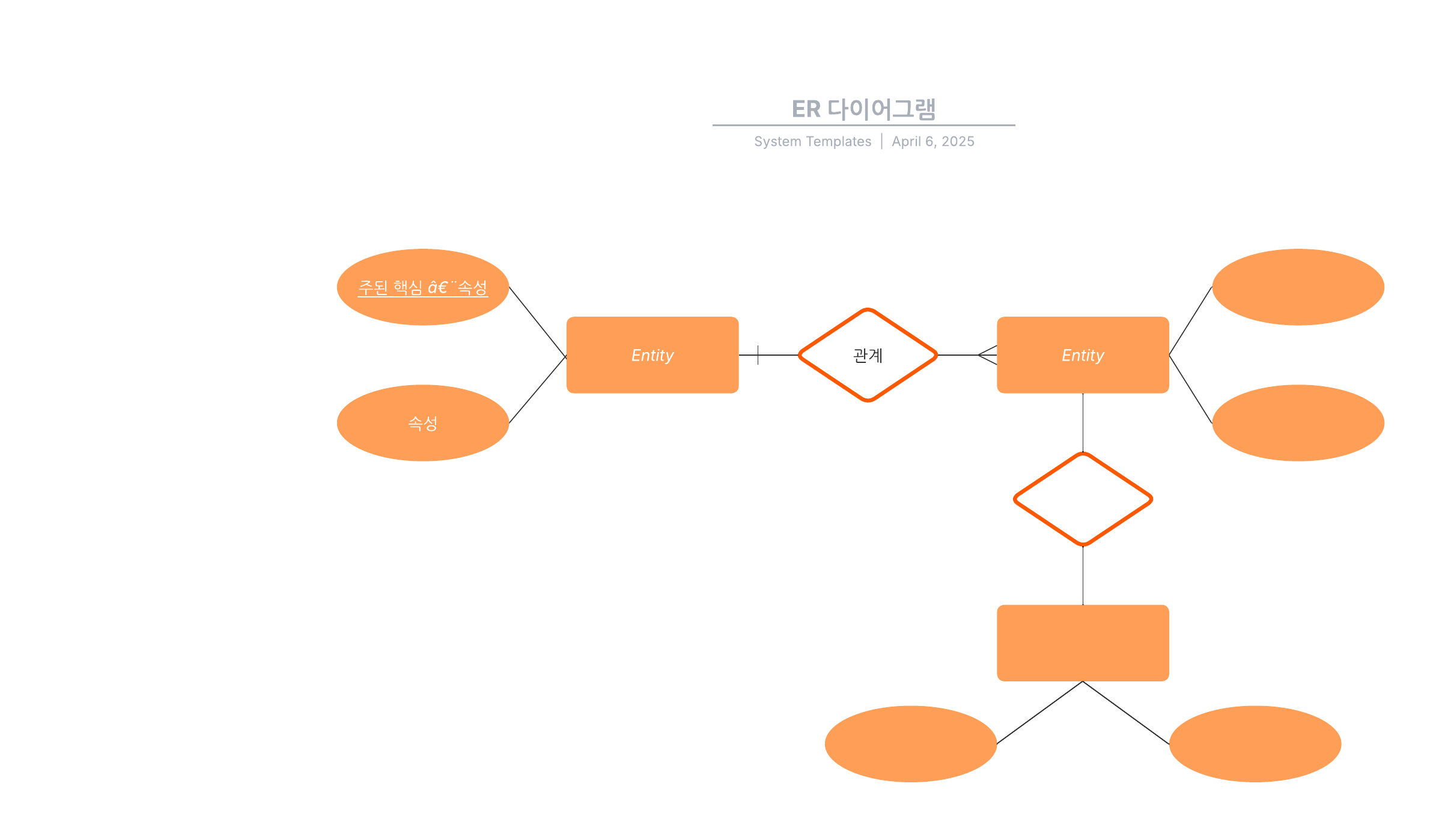 사용 사례에 맞게 ER 다이어그램을 커스터마이징하려면 이 템플릿을 열고 내용을 추가하세요.
