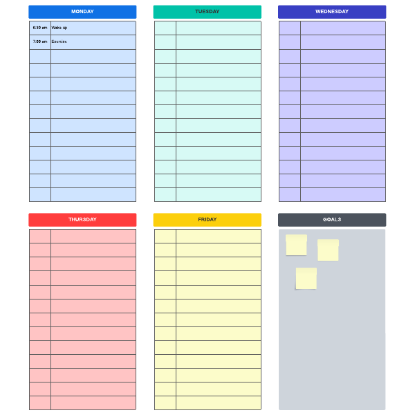 Onze online plannersjablonen maken plannen preciezer, hoe gedetailleerd of eenvoudig je agenda ook is. Of je nu op zoek bent naar een eenvoudige dagelijkse agenda, een wekelijkse planner of een gedetailleerde projecttijdlijn, onze sjablonen kunnen de benodigde visuele organisatie bieden en je planningssessie een kickstart geven.