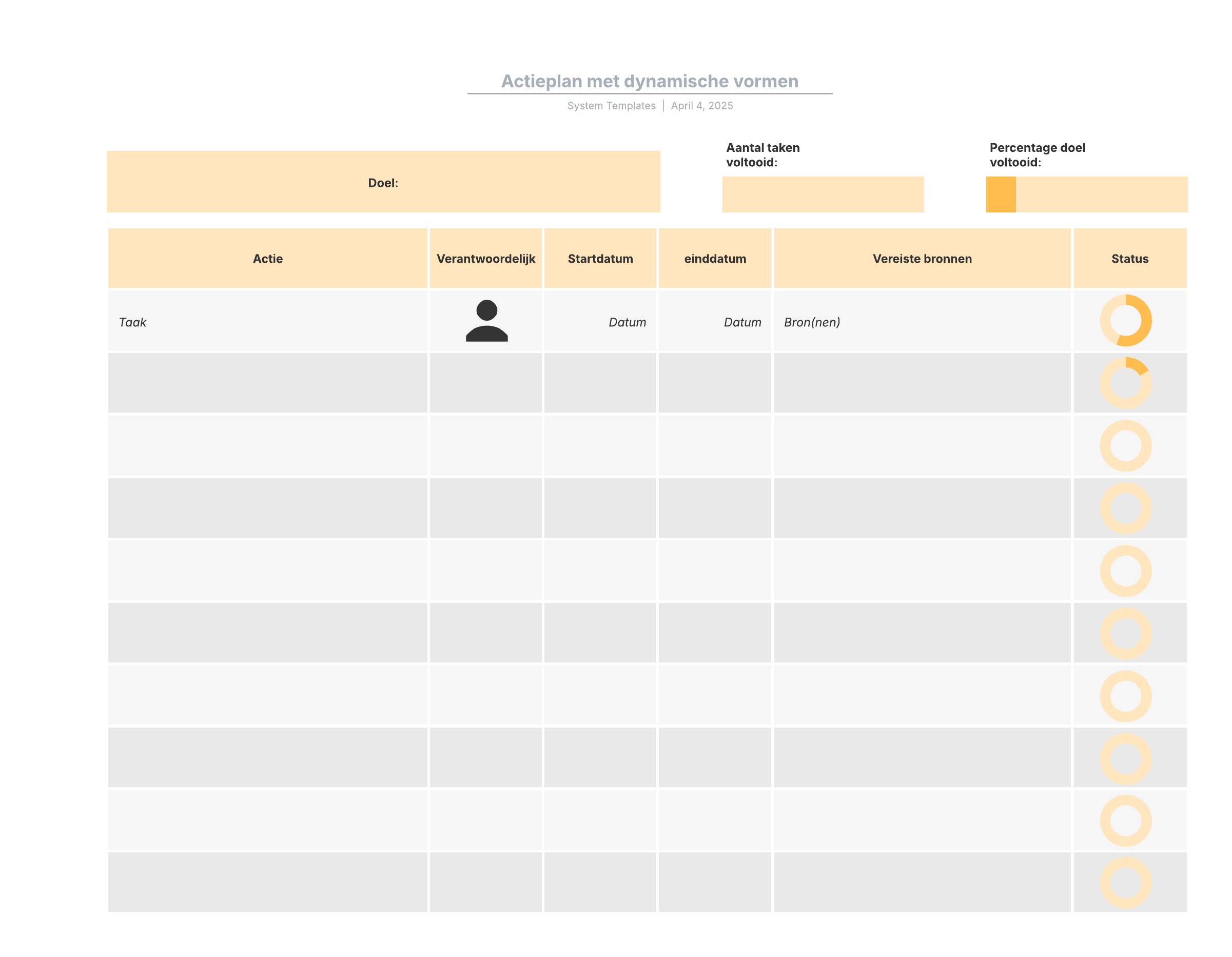 Open het template, voeg content toe en begin met het aanpassen van het actie plan.