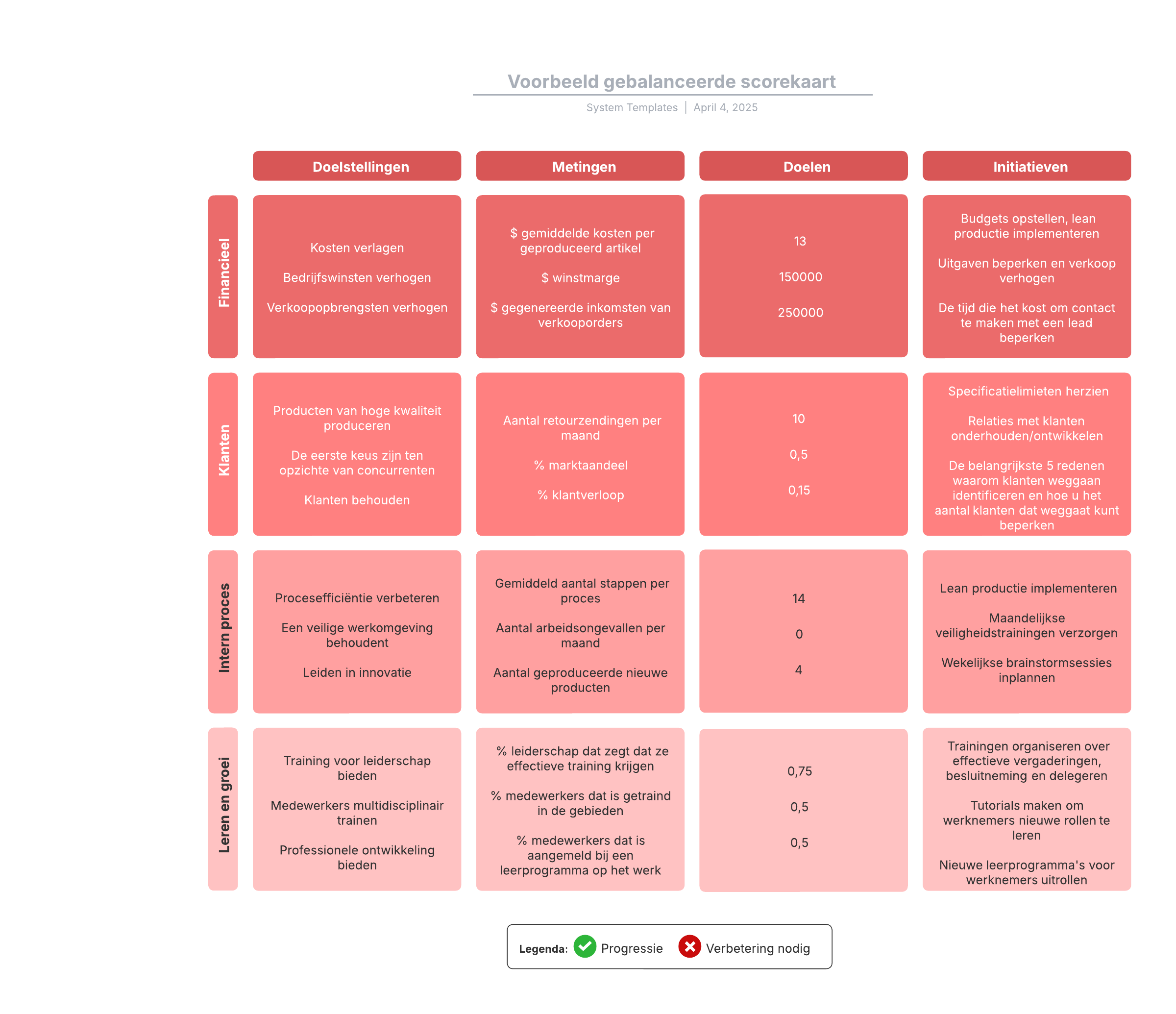 Open het voorbeeld van een balanced scorecard en pas het aan zodat het past bij jouw use case.