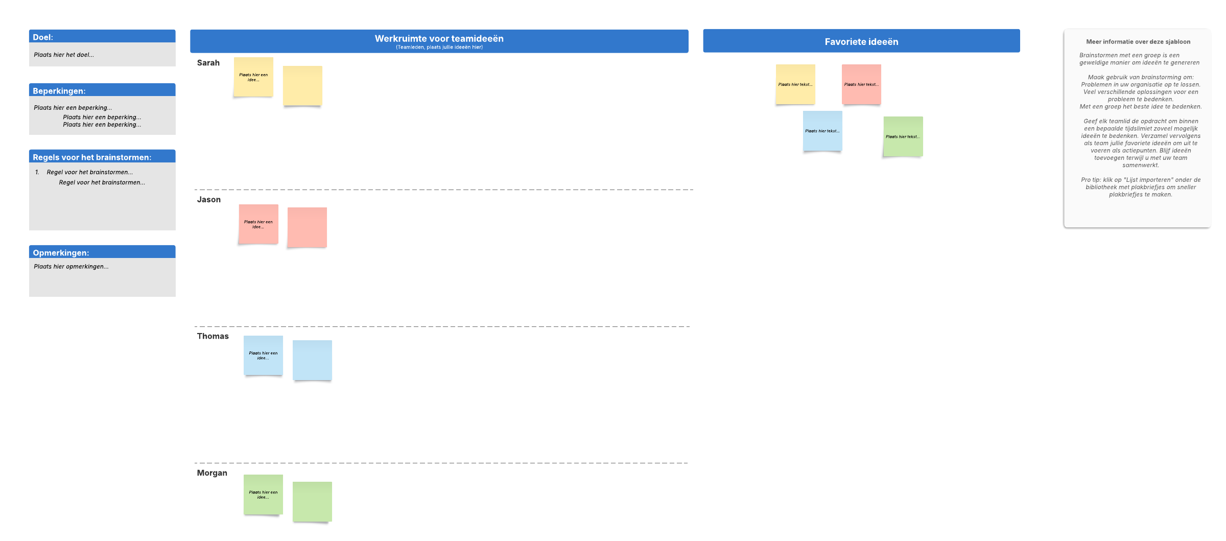 Met deze sjabloon voor gezamenlijk brainstormen kunt u: