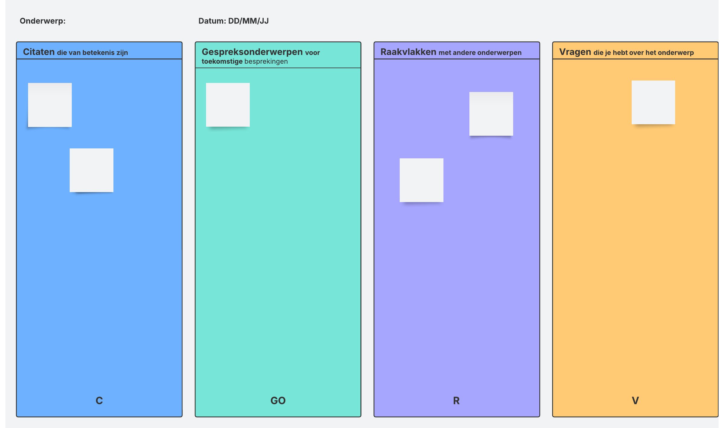 Gebruik deze sjabloon voor relevante gegevens van een vergadering, lezing of seminar en deel de ingevulde sjabloon met uw team.