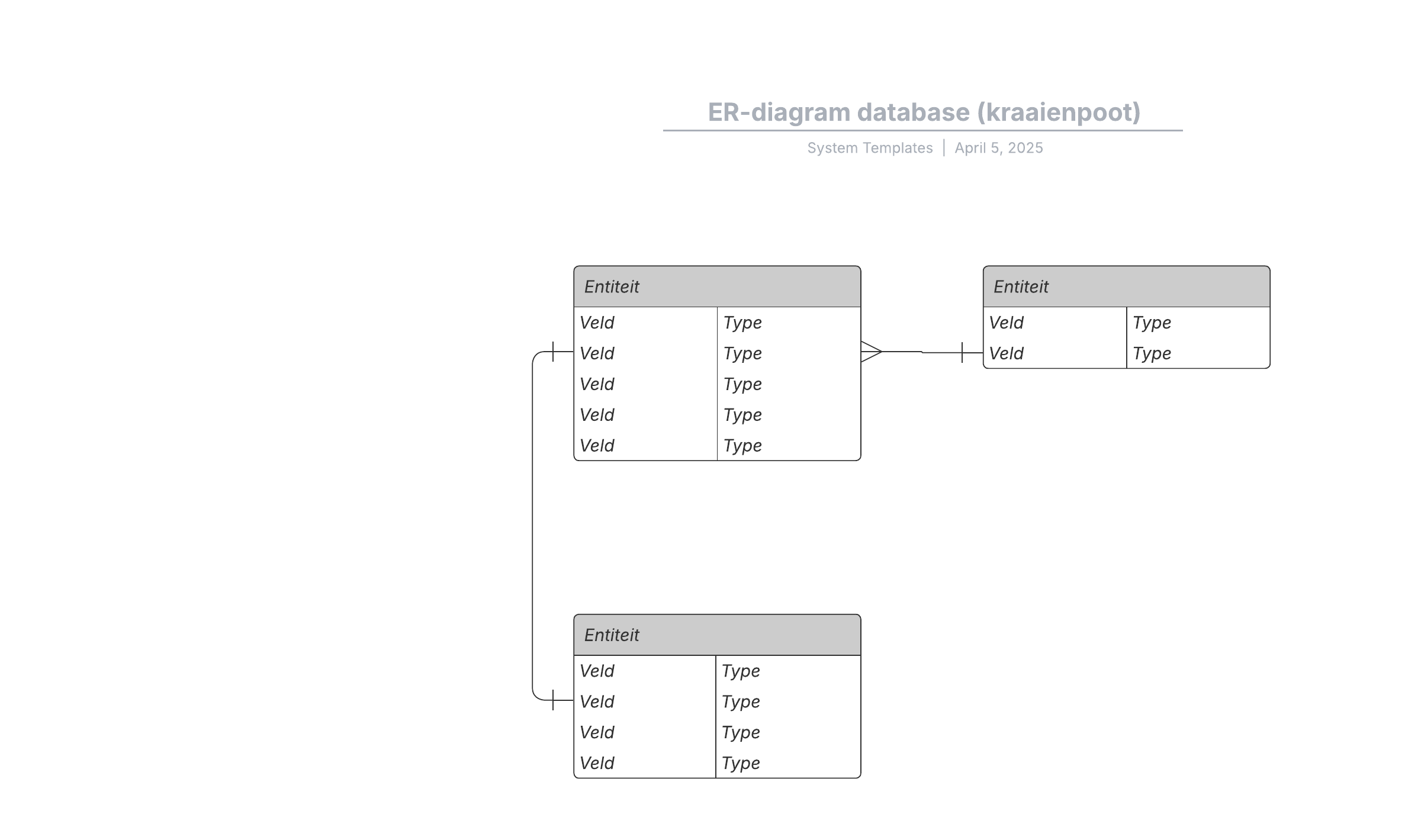 Open deze sjabloon en voeg inhoud toe om dit ER-diagram voor een database aan uw use case aan te passen.