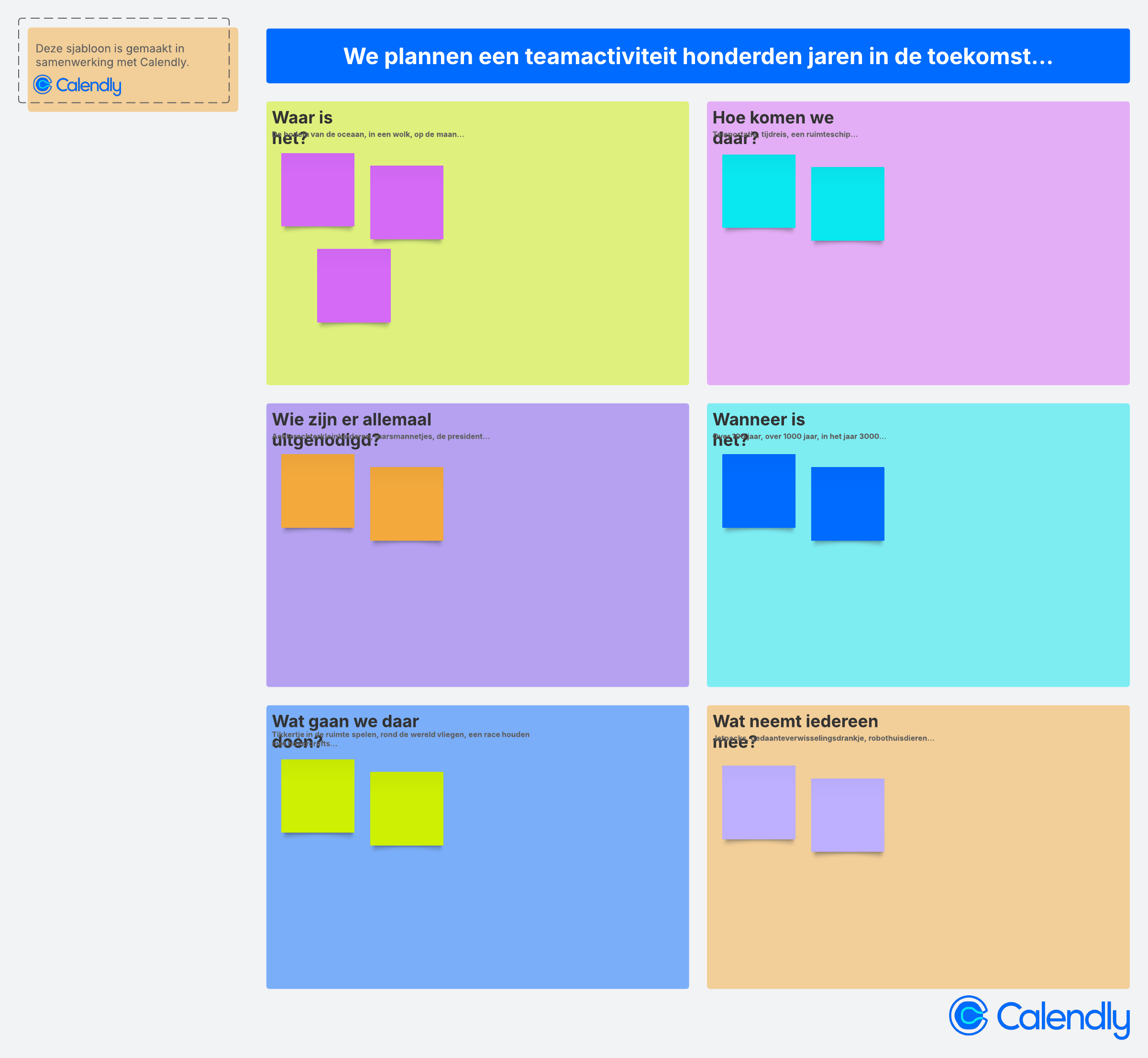 Gebruik deze door Calendly gesponsorde activiteit als een leuke ijsbreker en plan een hypothetische teamactiviteit honderden jaren in de toekomst.