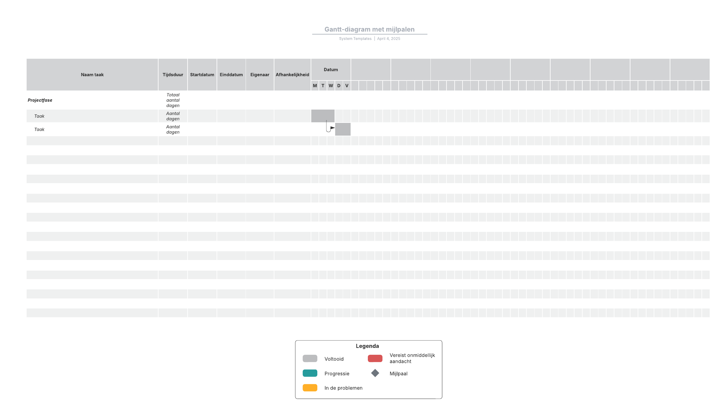 Open deze sjabloon en voeg inhoud toe om dit Gantt-diagram aan te passen op uw use case.