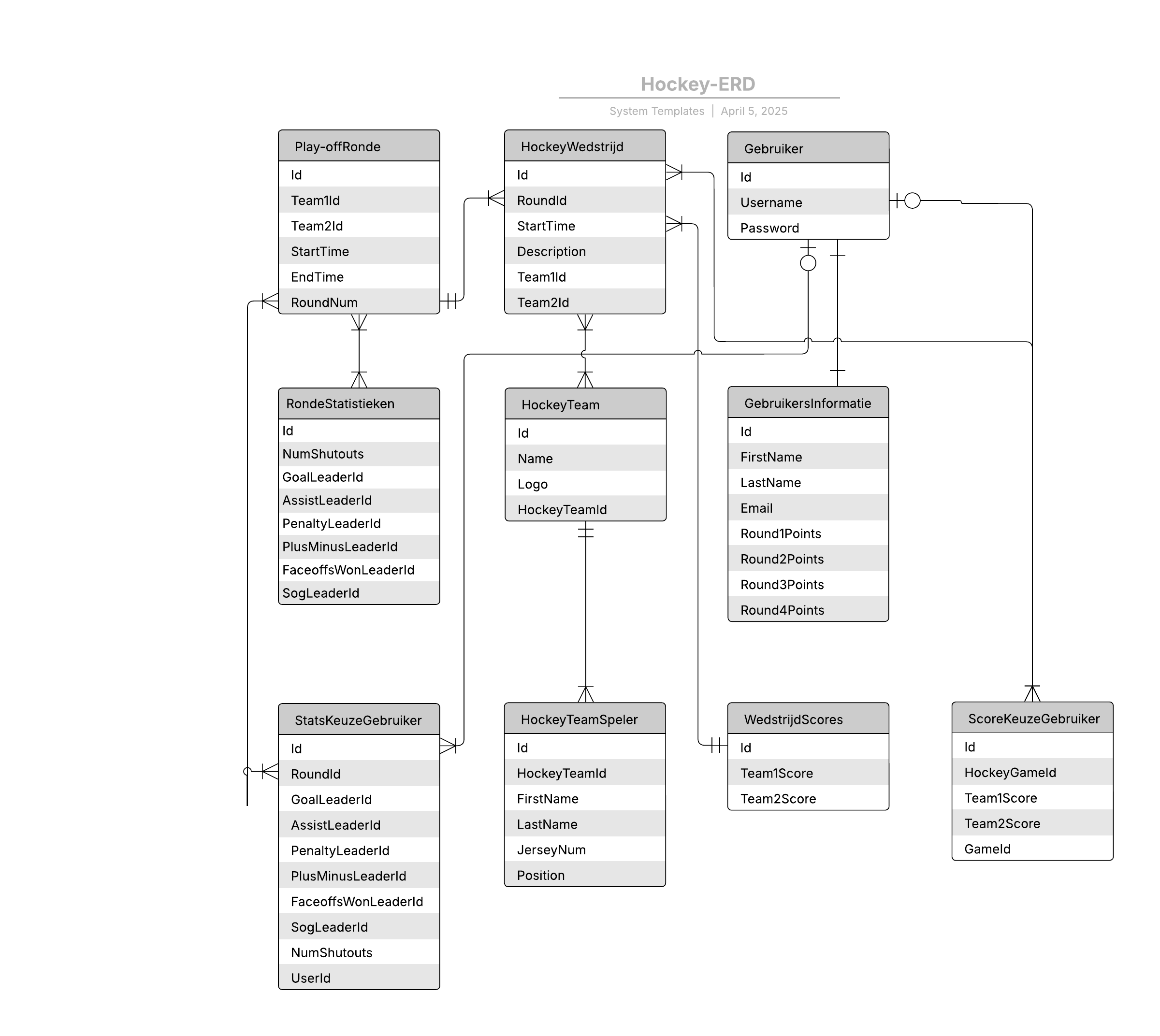 Open dit sjabloon en voeg inhoud toe om dit hockey-ERD aan te passen op uw use case.