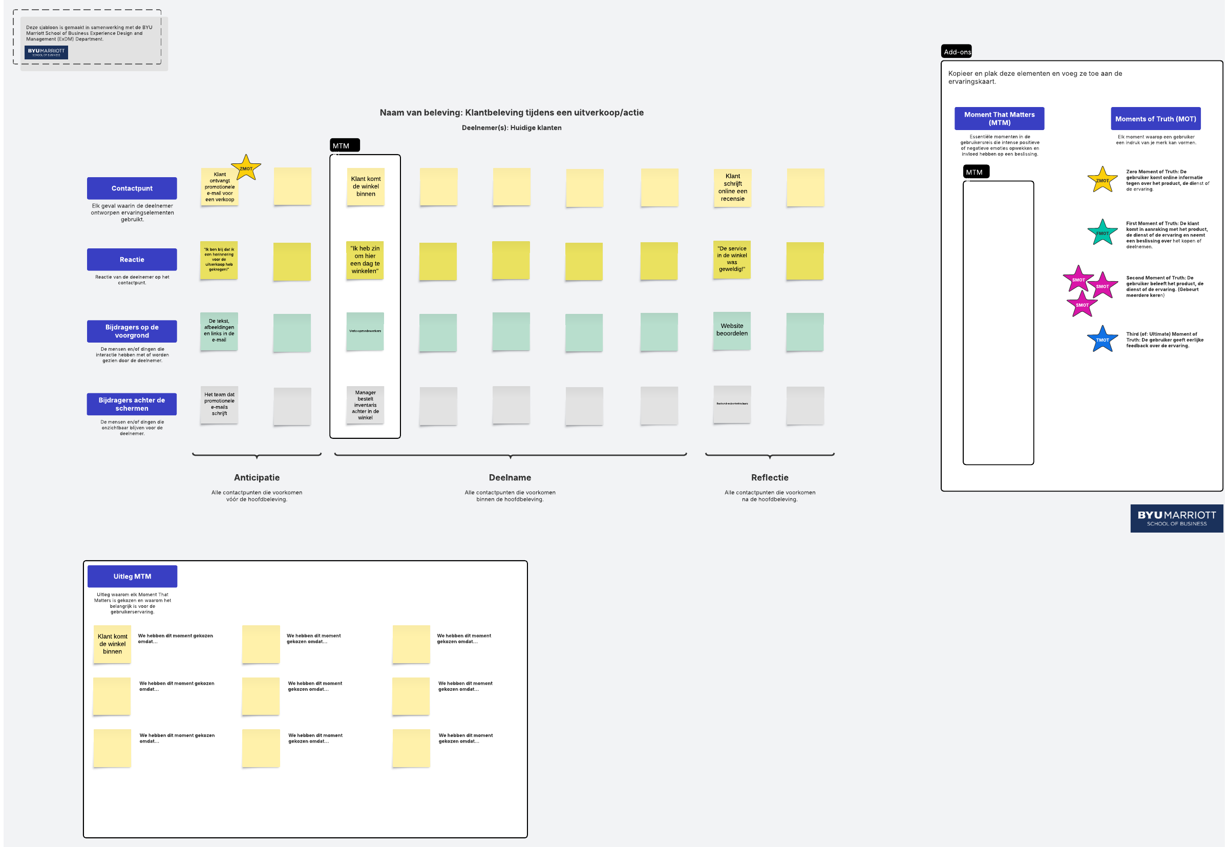 Met deze ervaringskaart kun je je huidige gebruikerservaringen beter begrijpen en beheren. Je krijgt inzicht in de reacties van gebruikers, factoren die bijdragen aan contactpunten, belangrijke details van elementen en de 'Moments That Matter' in de ervaring.