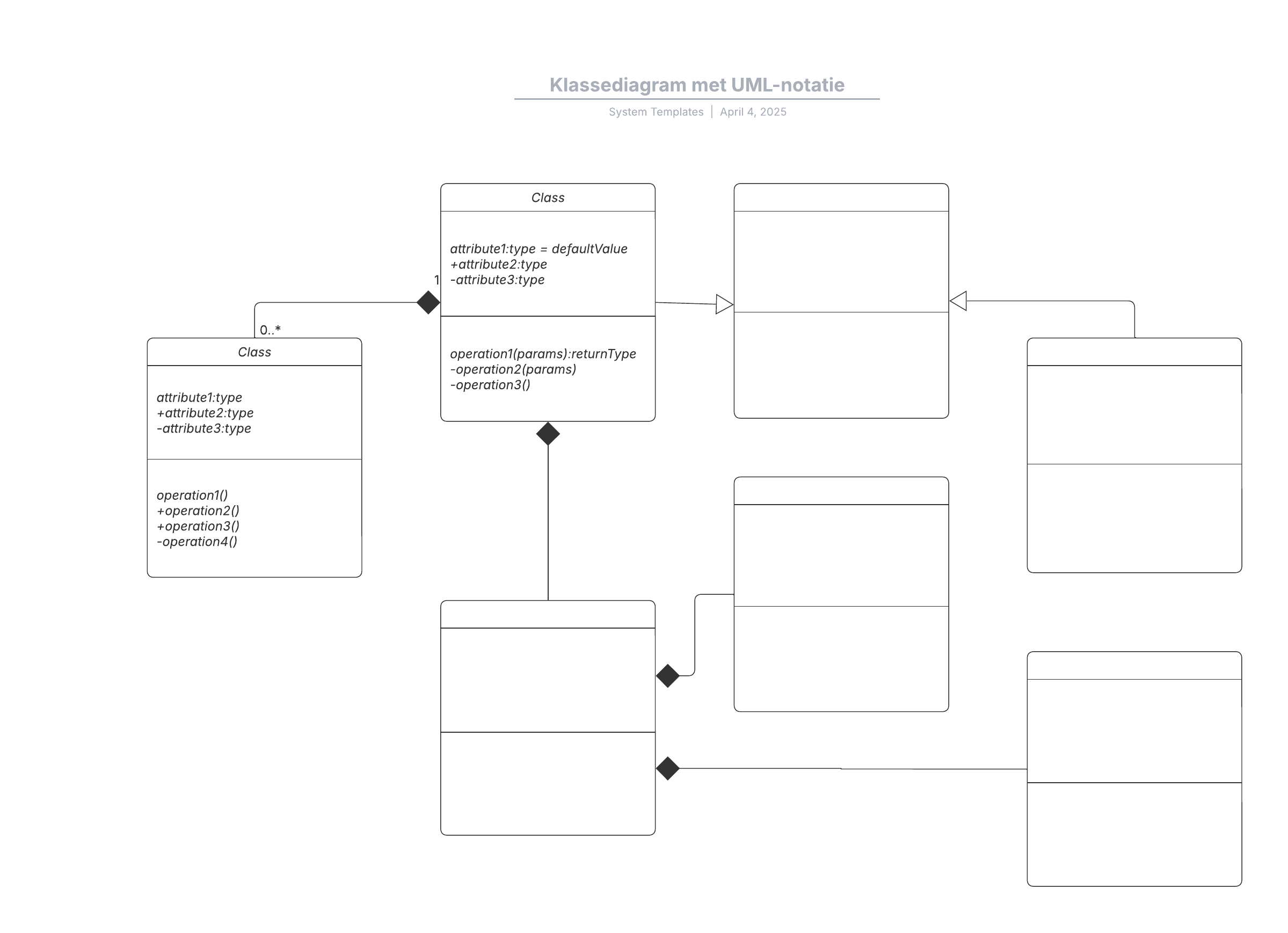 Open deze sjabloon en voeg inhoud toe om dit klassediagram met UML-notatie aan te passen op uw use case.