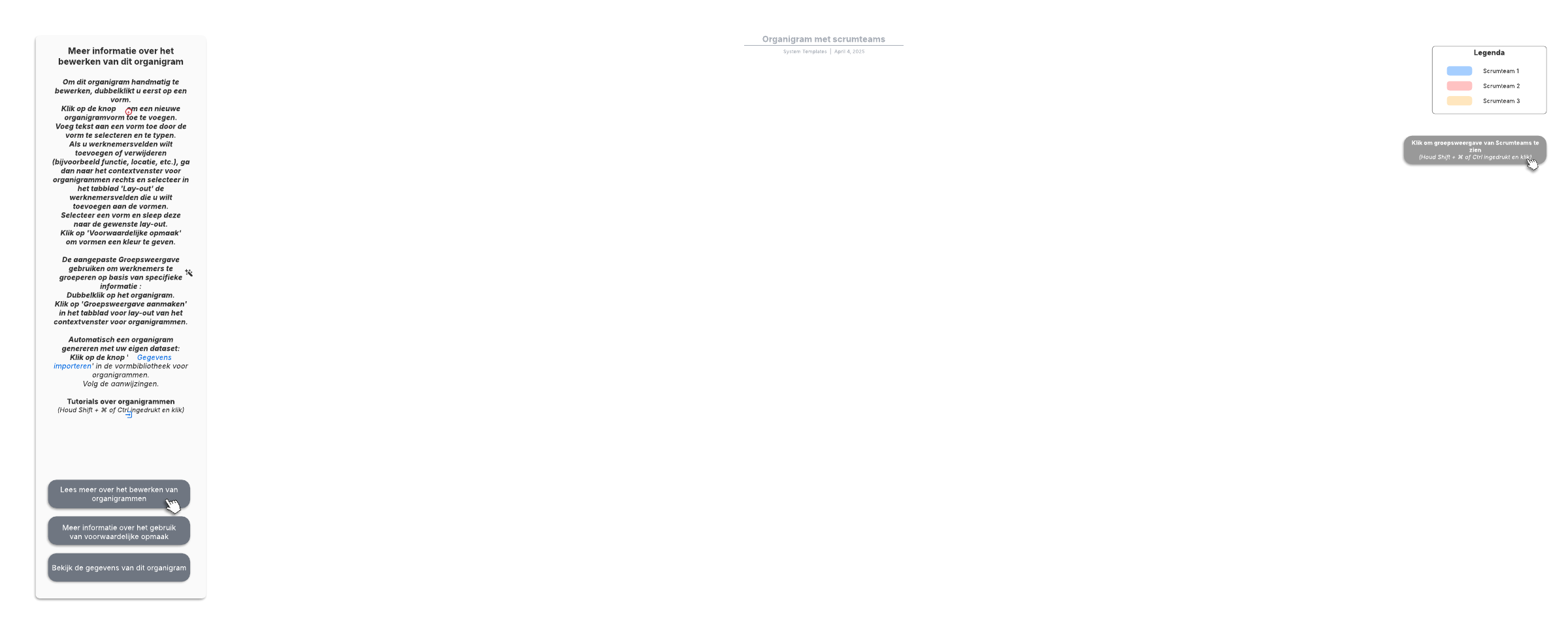 Met deze organigramsjabloon per scrumteam kunt u: