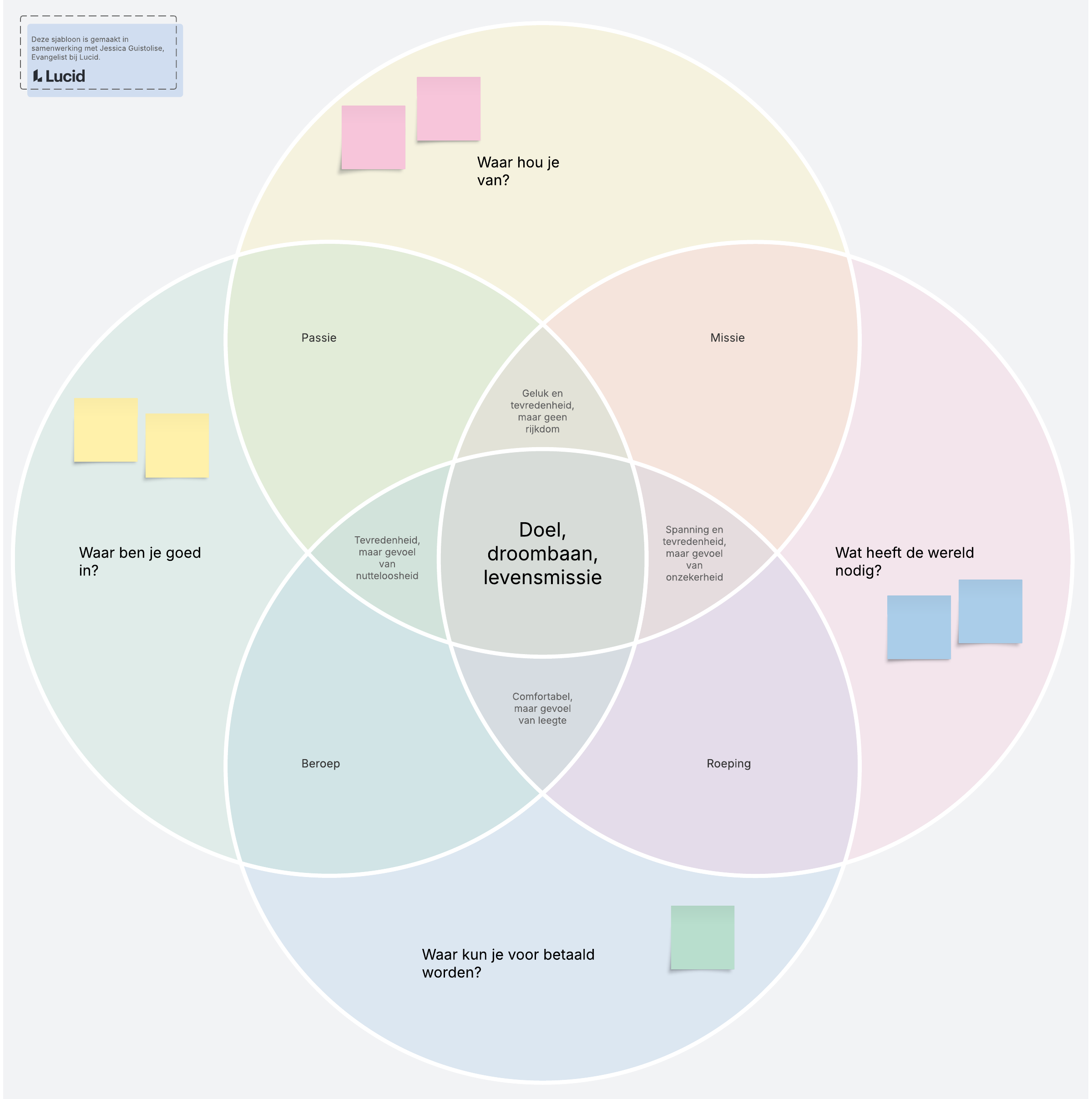 Deze sjabloon voor een persoonlijke doelomschrijving is geïnspireerd op het Japanse concept Ikigai en helpt je diep in te gaan op je innerlijke gevoel van wie je bent.
