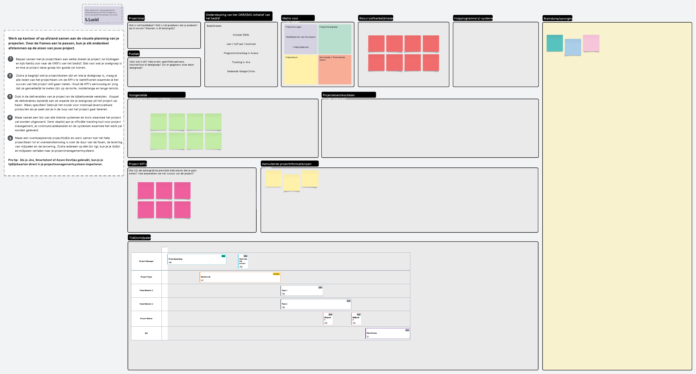 Gebruik dit project planning template om persoonlijk of op afstand samen te werken, en je projecten visueel te plannen. Je kunt het sjabloon gebruiken zoals het is, maar past het ook gemakkelijk aan de specifieke behoeften van jouw project aan.