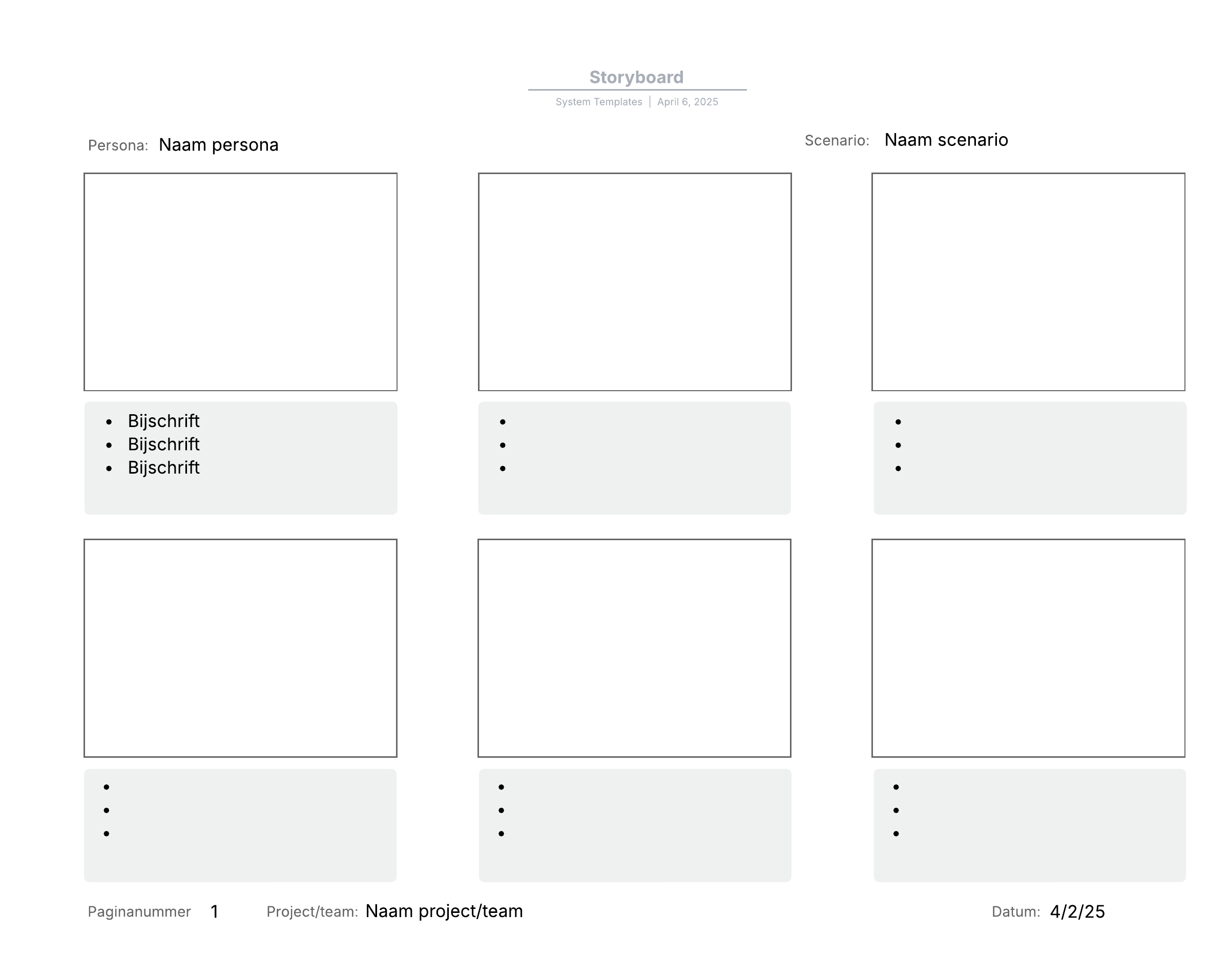 Open deze sjabloon en voeg inhoud toe om dit storyboard aan uw gebruikerssituatie aan te passen.