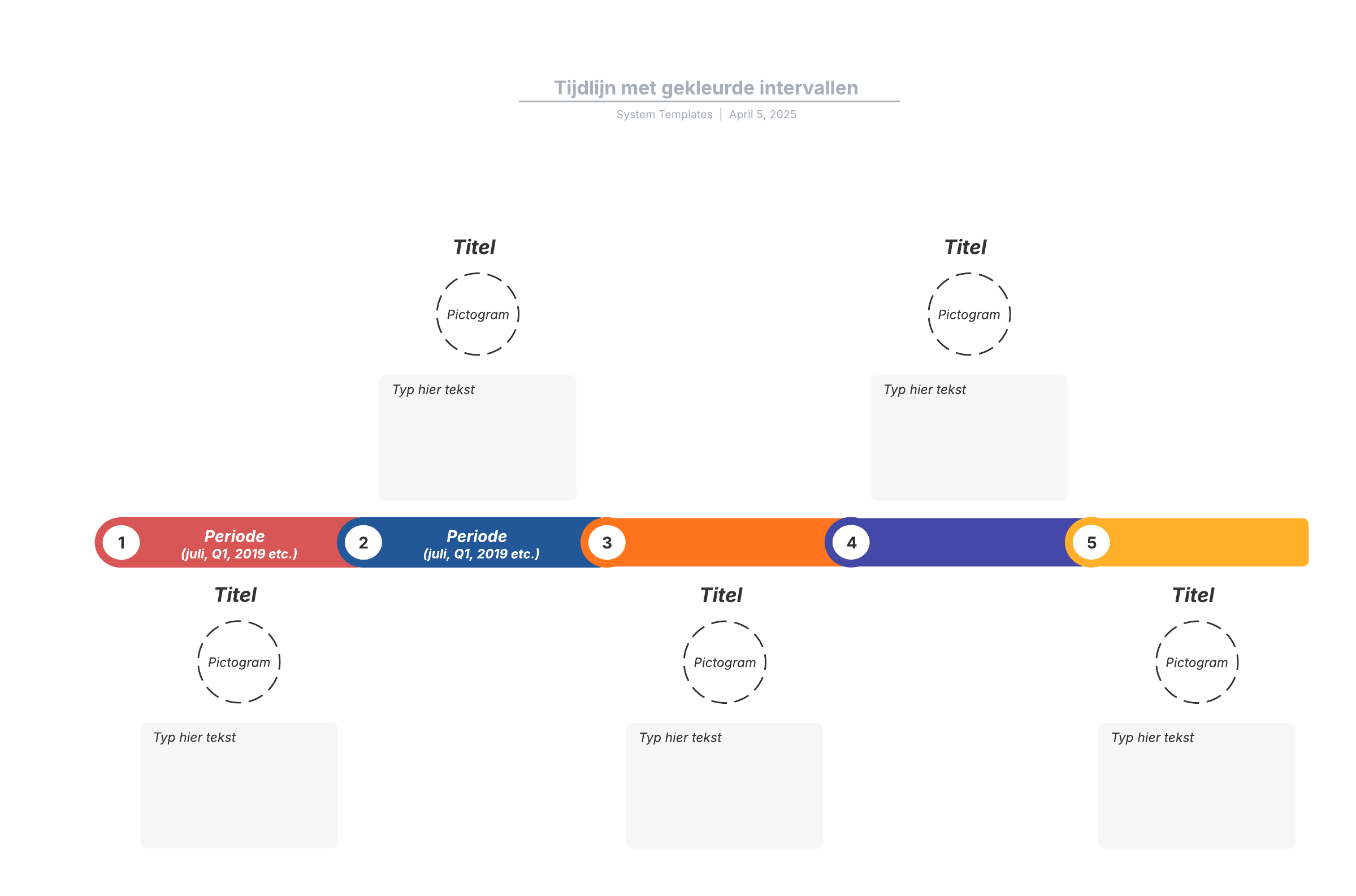 Open deze sjabloon en voeg inhoud toe om dit tijdlijndiagram aan te passen op uw use case.