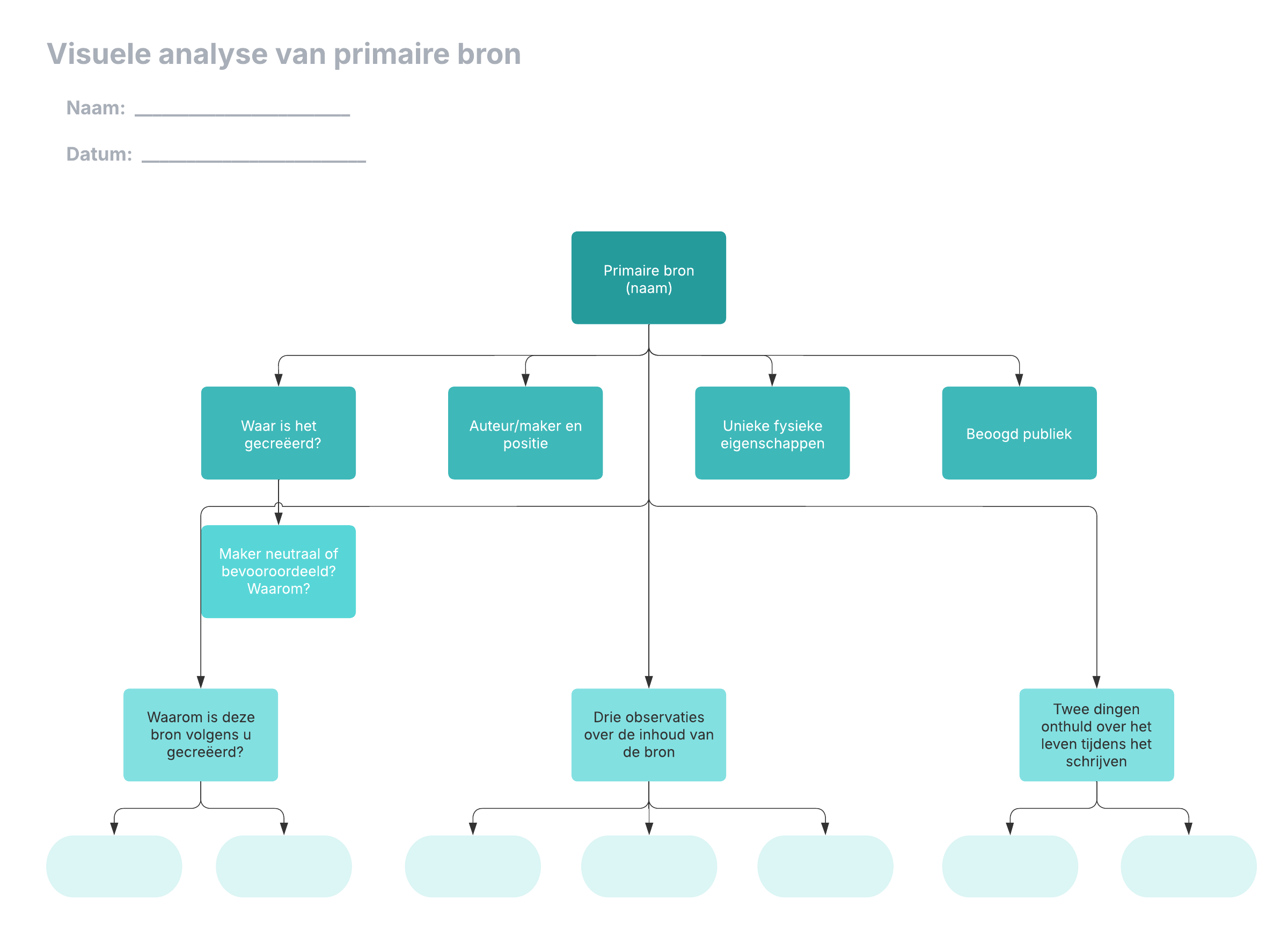 Met deze sjabloon voor een visuele analyse van een primaire bron kunt u:
