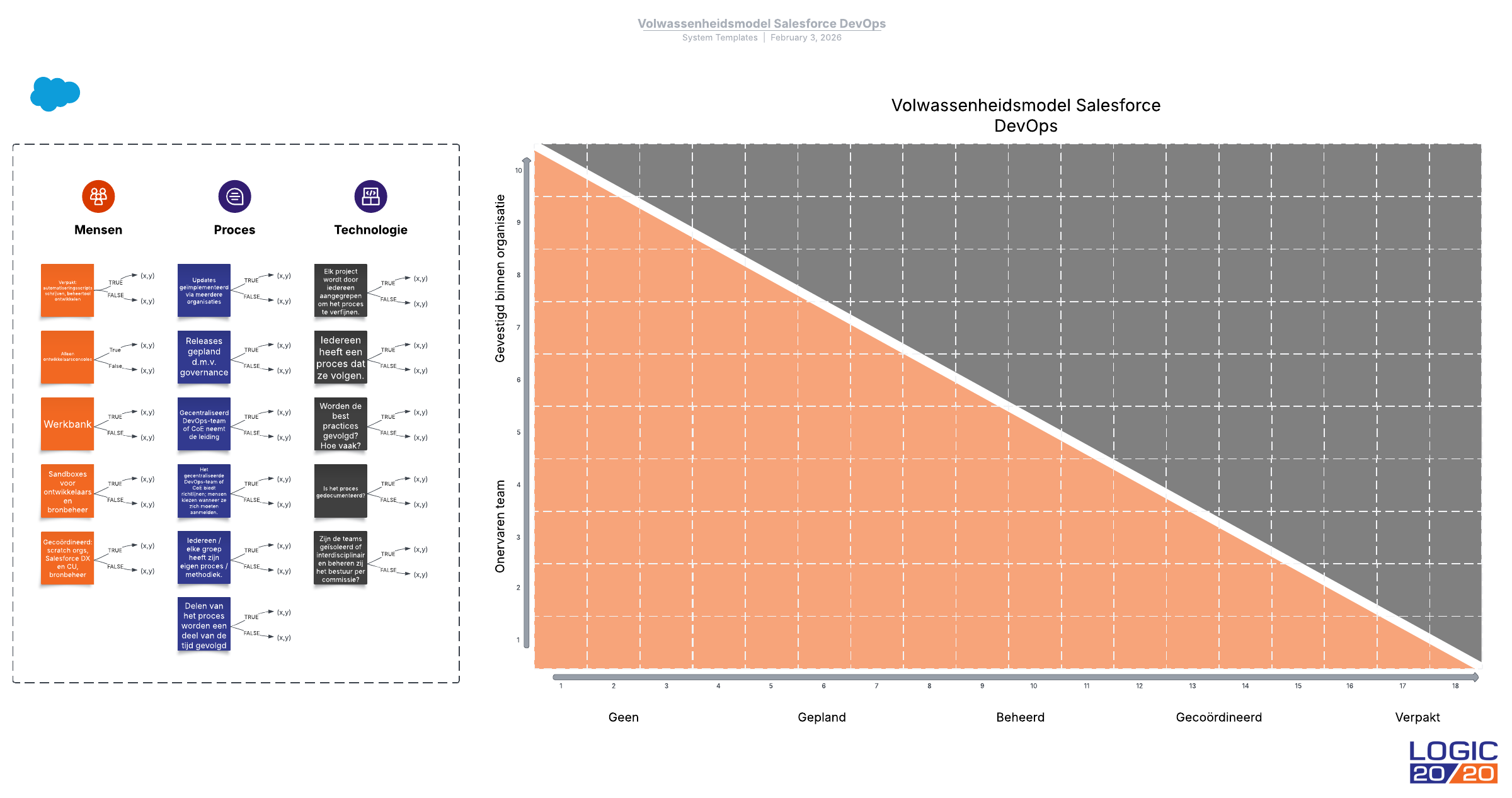 Open deze sjabloon en voeg inhoud toe om dit Volwassenheidsmodel Salesforce DevOps aan jouw use case aan te passen.