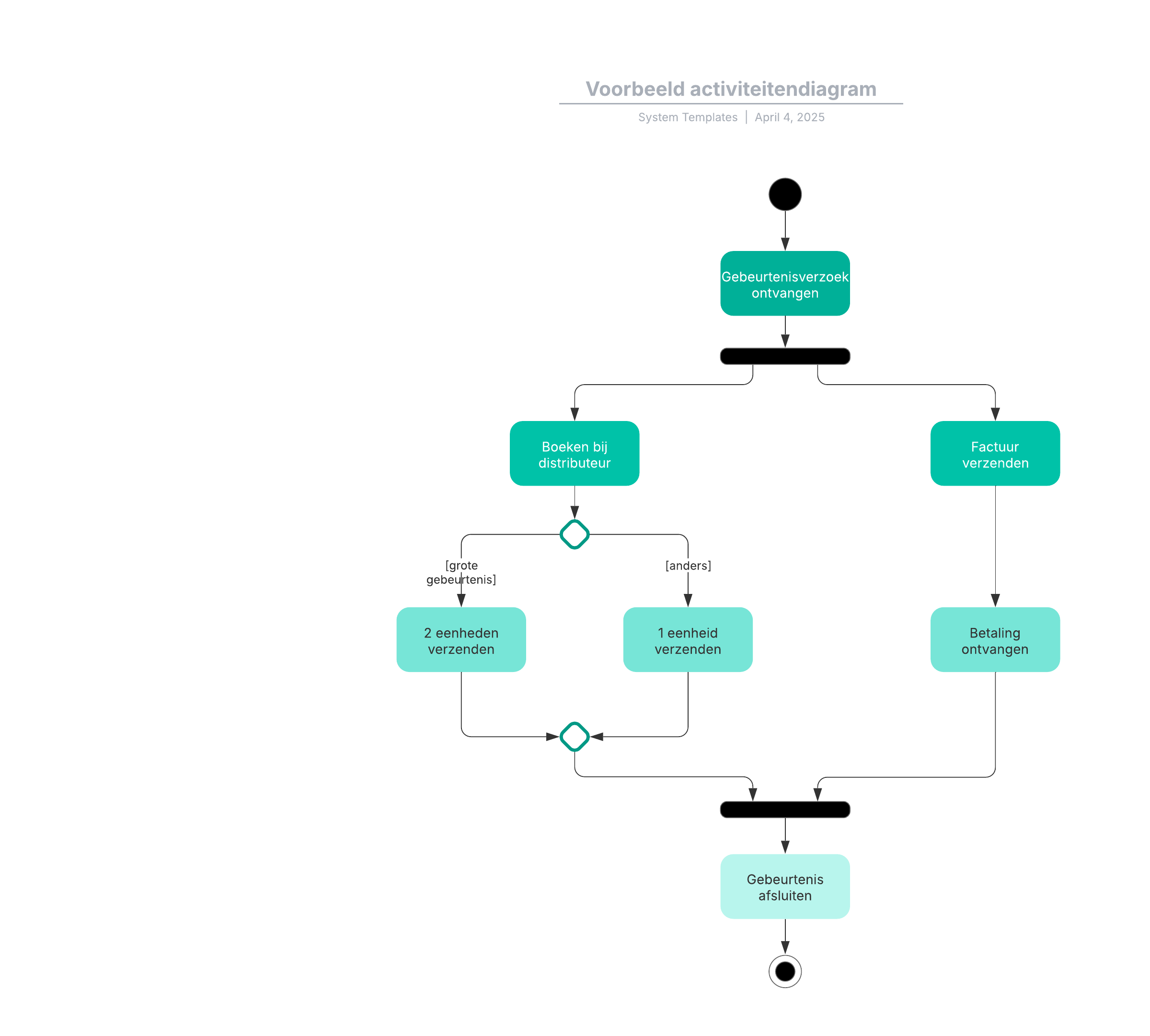 Open deze sjabloon voor een gedetailleerd voorbeeld van een activiteitendiagram dat u kunt aanpassen op uw use case.