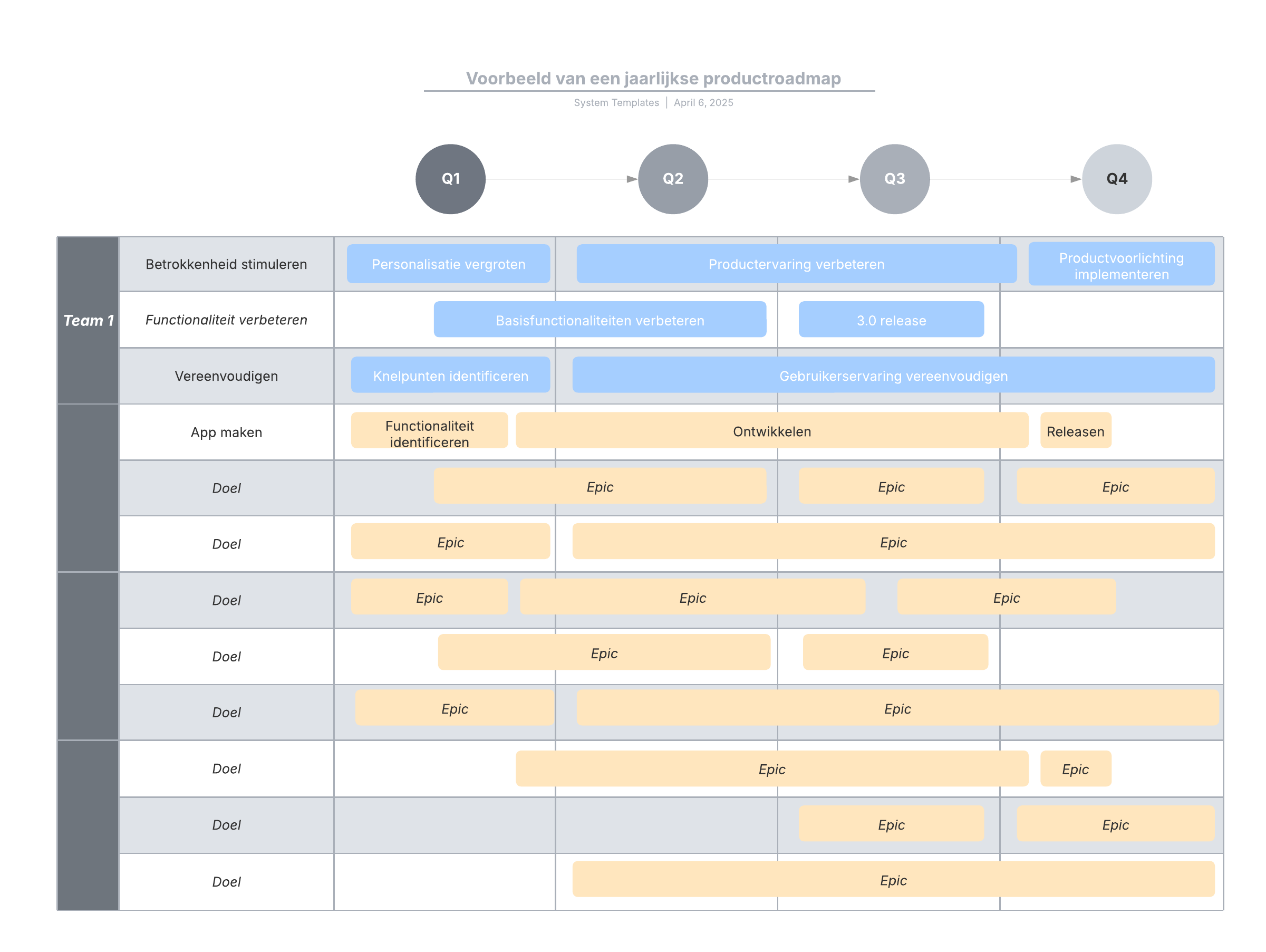 Voorbeeld van een jaarlijkse productroadmap