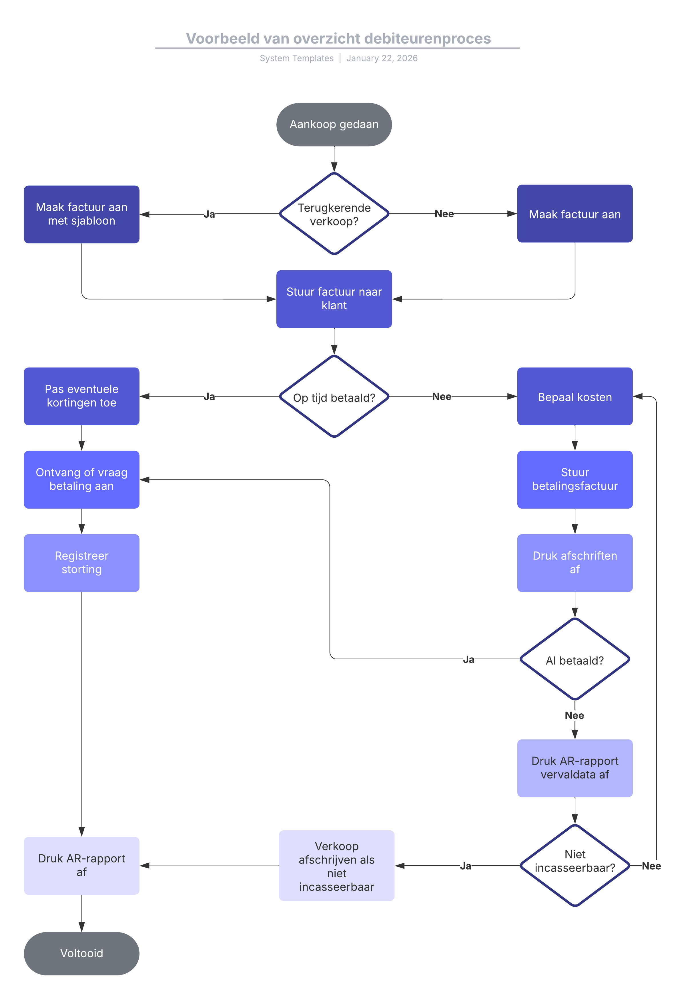 Open deze sjabloon voor een gedetailleerd voorbeeld van een debiteurenproces dat u aan uw use case kunt aanpassen.