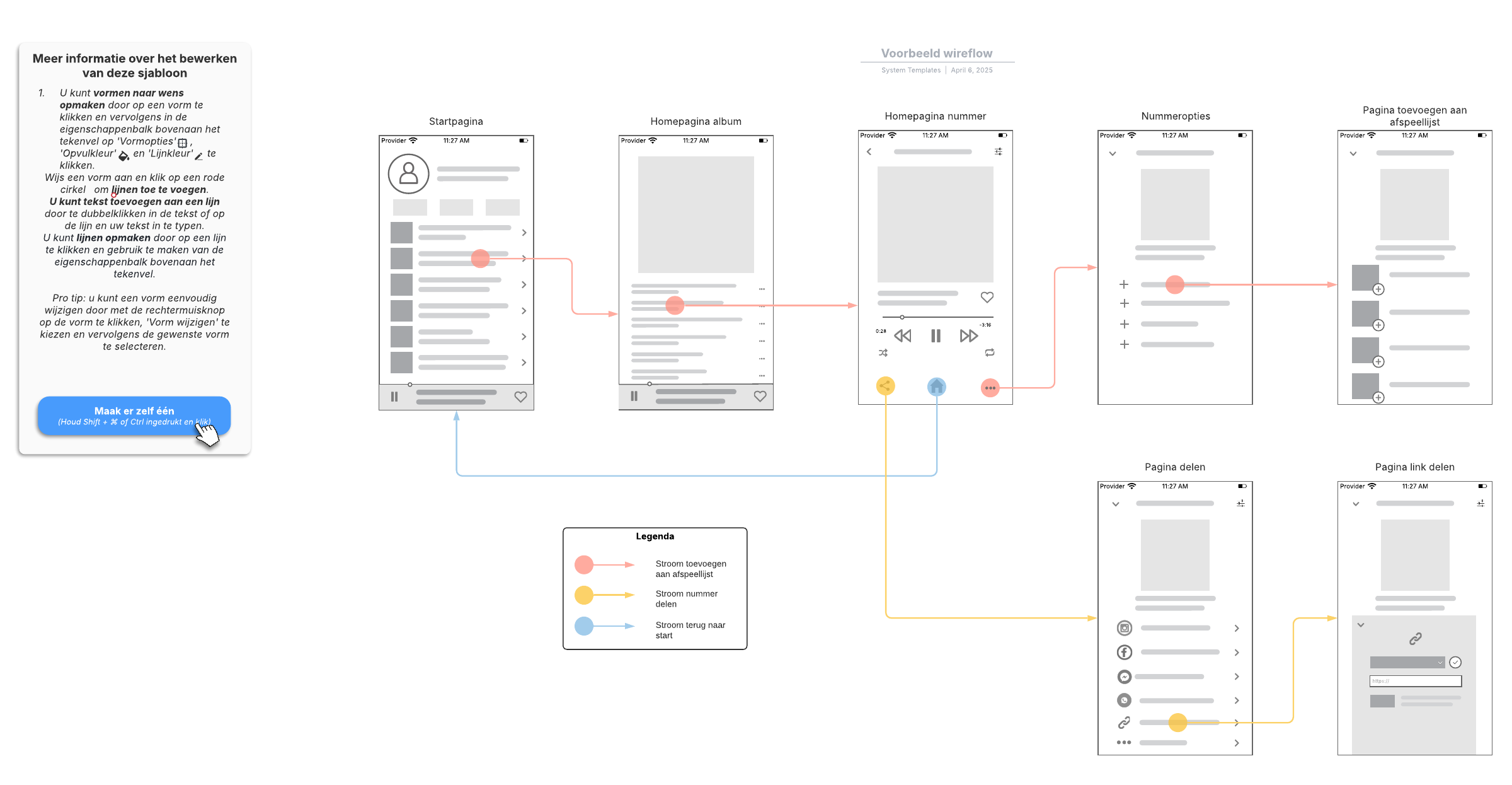 Open deze sjabloon voor een gedetailleerd voorbeeld van een wireflow dat u kunt aanpassen op uw use case.