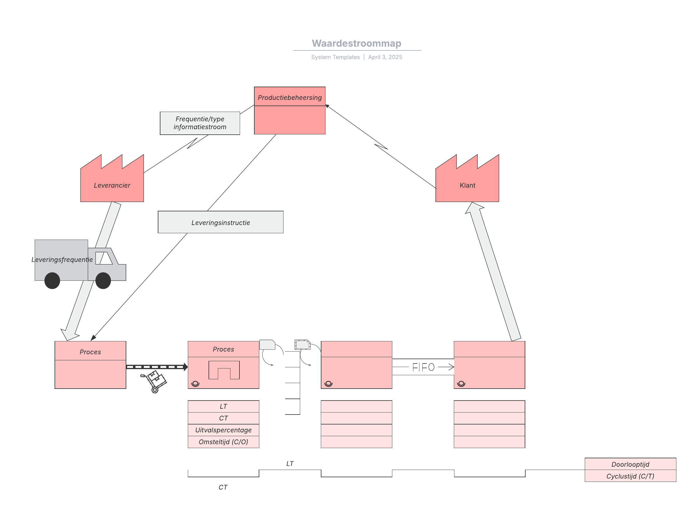 Met deze sjabloon van een waardestroomkaart (pull-systeem) kunt u: