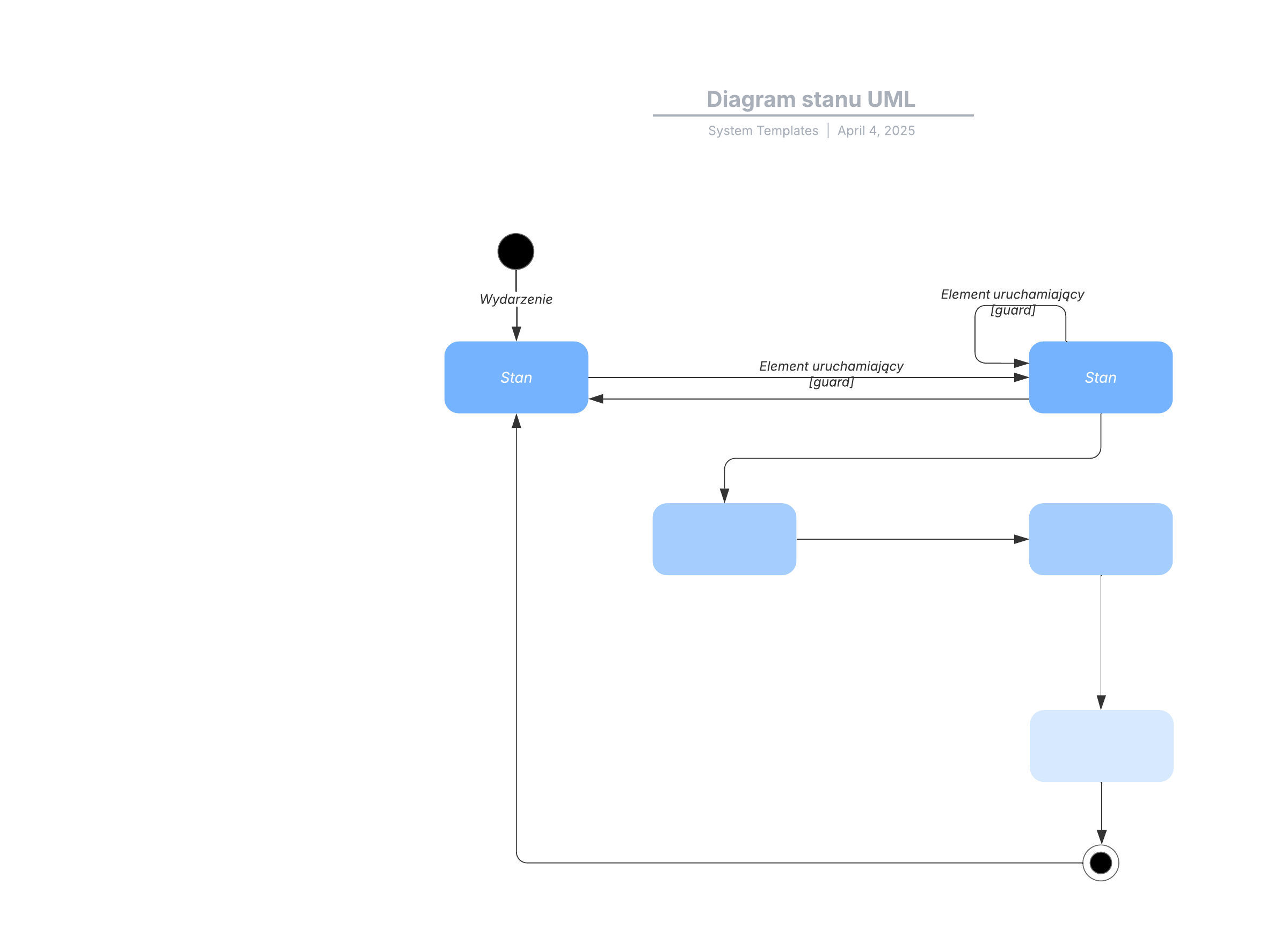 Otwórz ten szablon i dodaj zawartość, aby dostosować diagram stanu UML do swojego przypadku użycia.