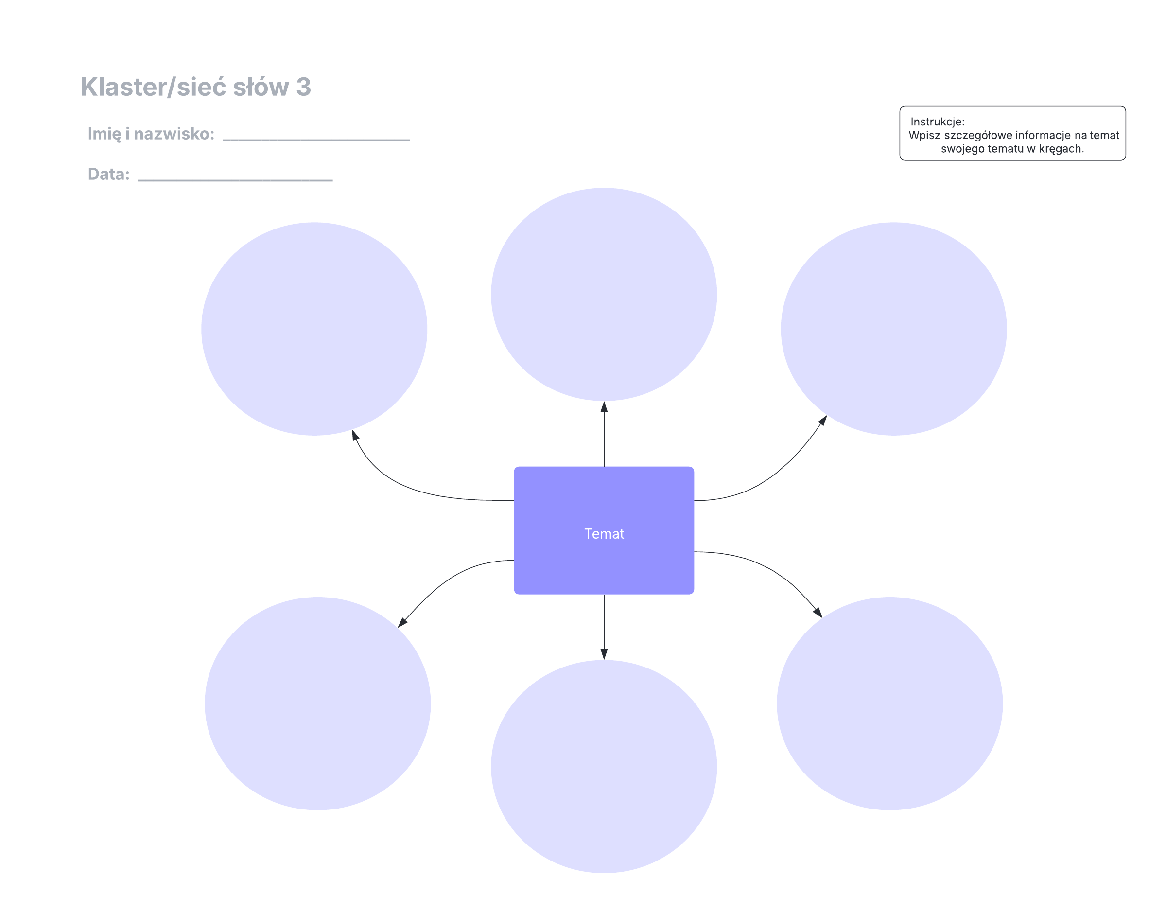 Ten szablon klastrów/sieci słów może Ci pomóc: