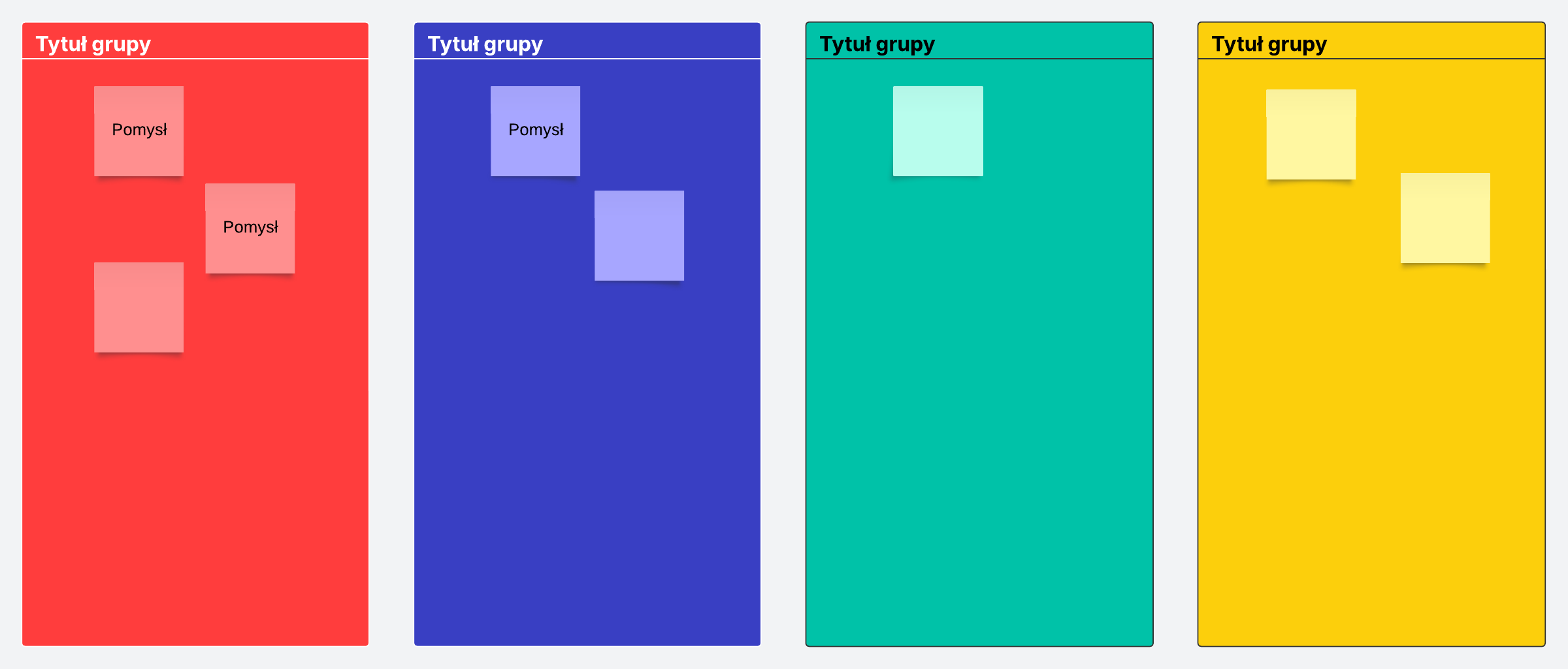 Dzięki diagramowi pokrewieństwa możesz wykorzystać duże ilości danych lub pomysłów, które powstały w trakcie burzy mózgów, i posegregować je w grupy, aby je przejrzeć, przeanalizować i określić kolejne kroki.