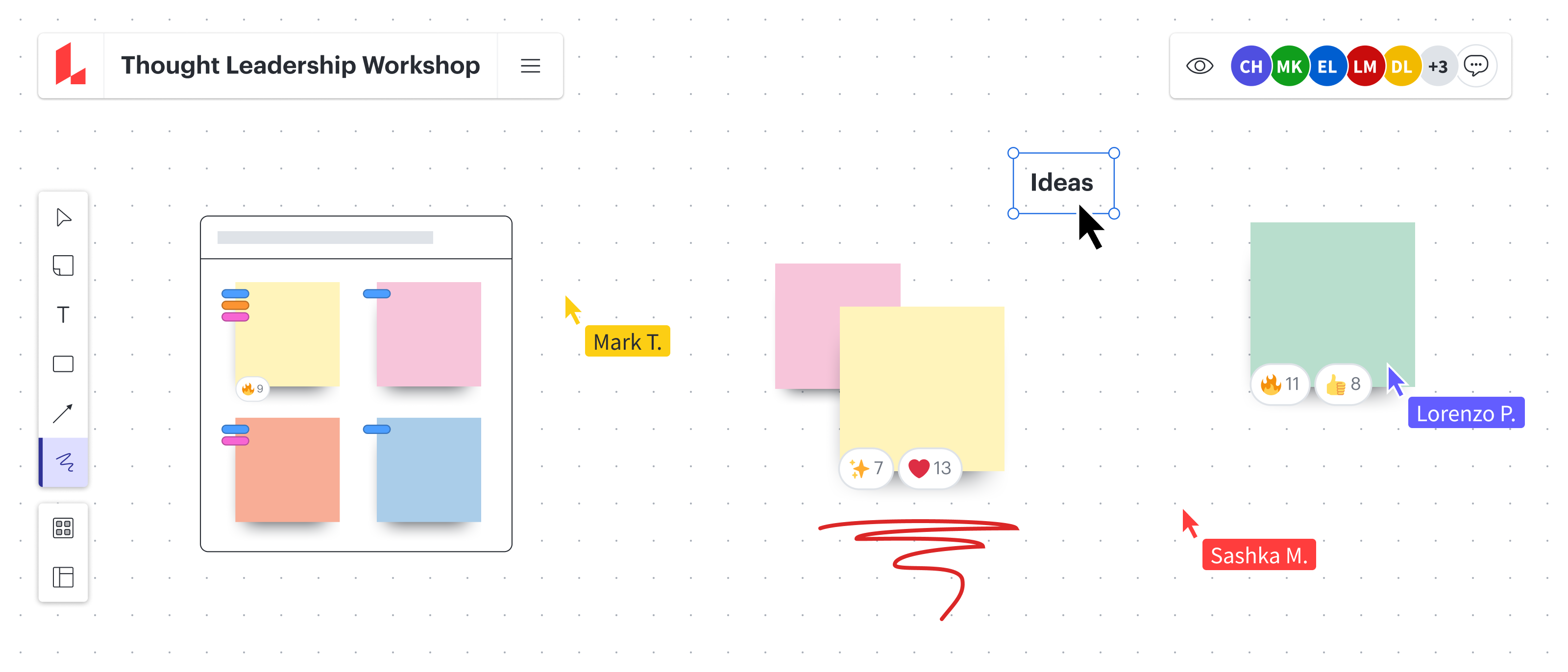 Agora a empresa usa o Lucidspark para organizar e realizar sessões de brainstorming, oficinas, reuniões de equipe e muito mais. Embora exista uma grande variedade de habilidades técnicas entre as equipes, Manvir afirma que todos gostam de usar o Lucidspark, e os recursos funcionam perfeitamente. A facilidade de uso e a possibilidade de trabalhar em uma plataforma compartilhada têm sido essenciais para a empresa.