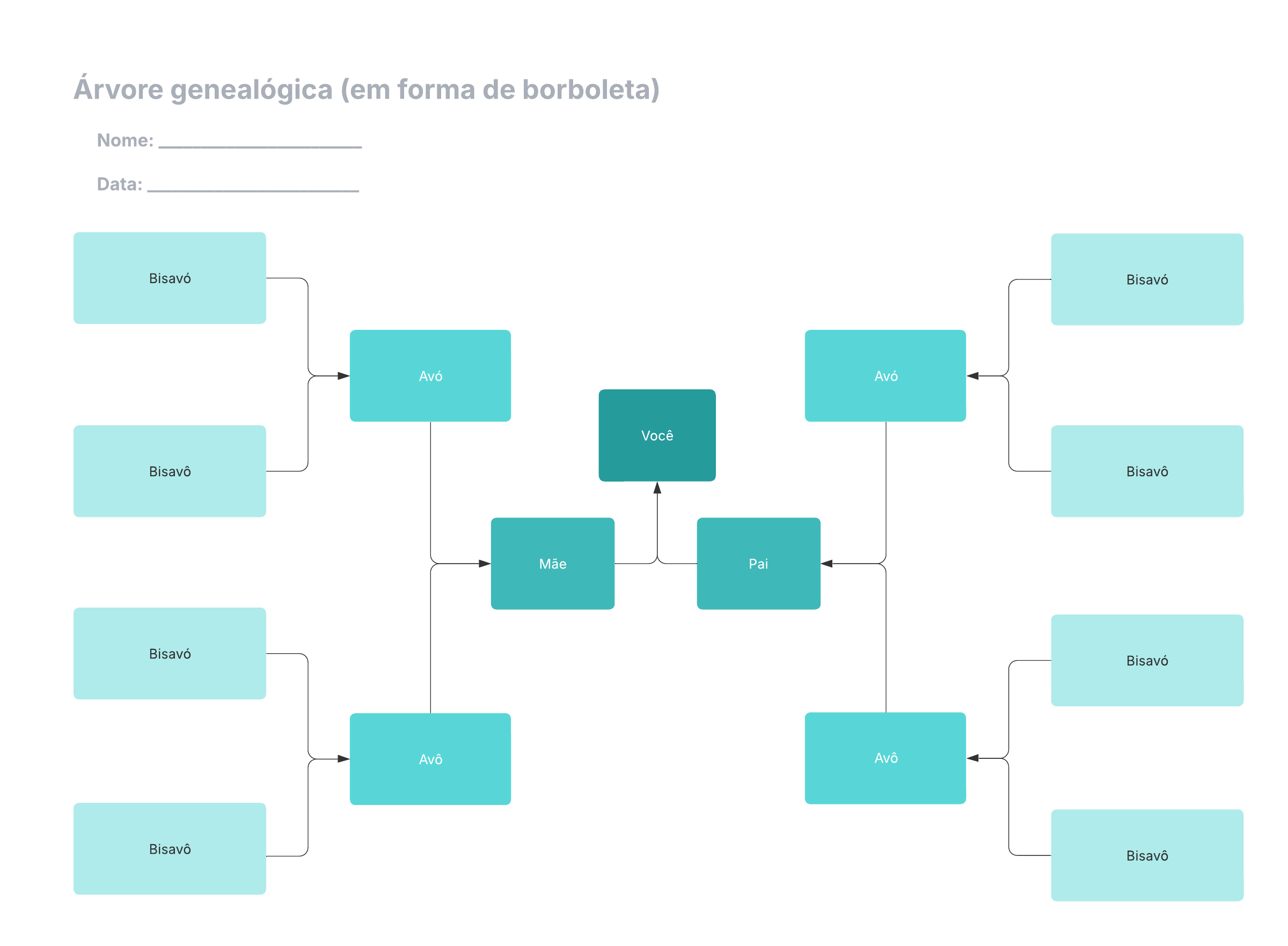 Este modelo de árvore genealógica (em forma de borboleta) pode ajudá-lo a: