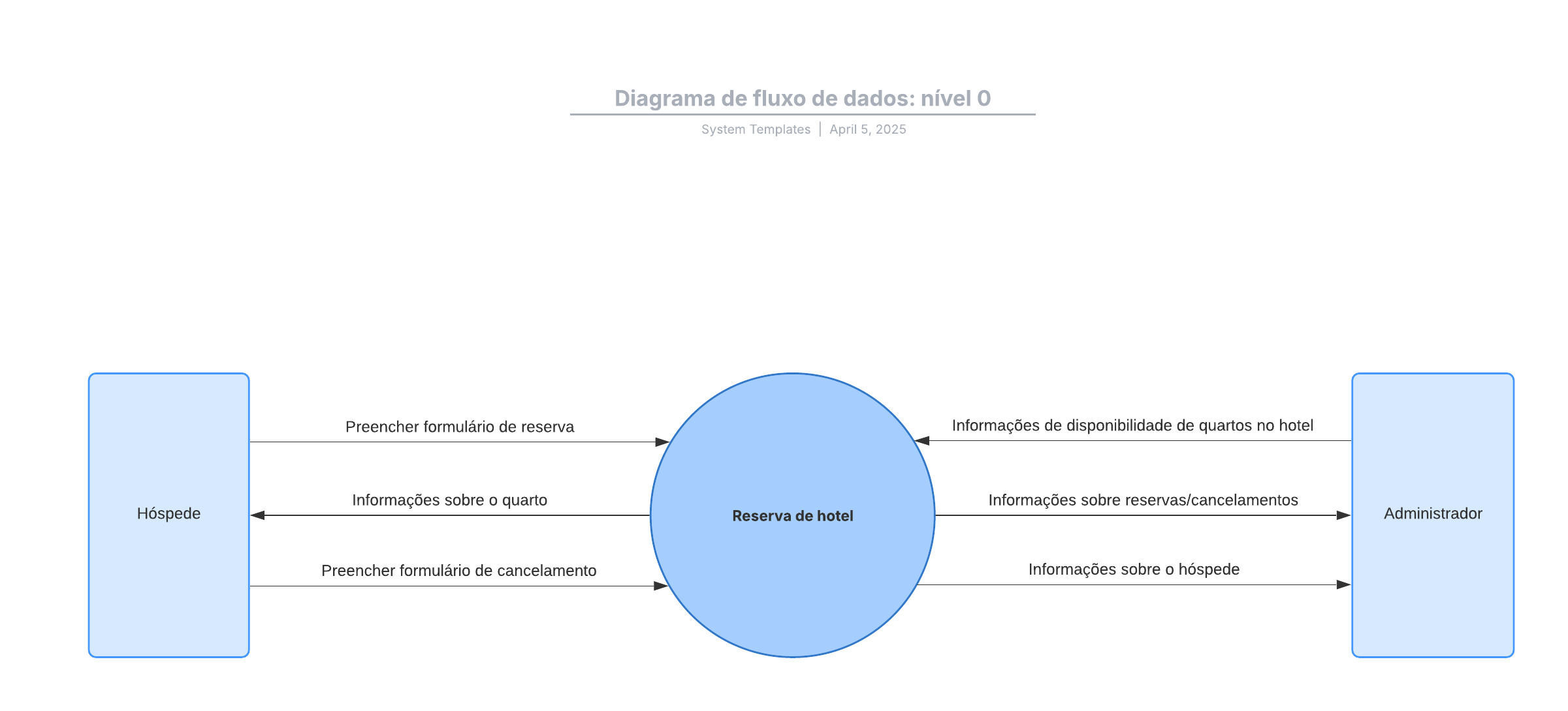 Abra este modelo para exibir um exemplo de diagrama de fluxo de dados de nível zero (diagrama de contexto), personalizável de acordo com seu caso de uso.