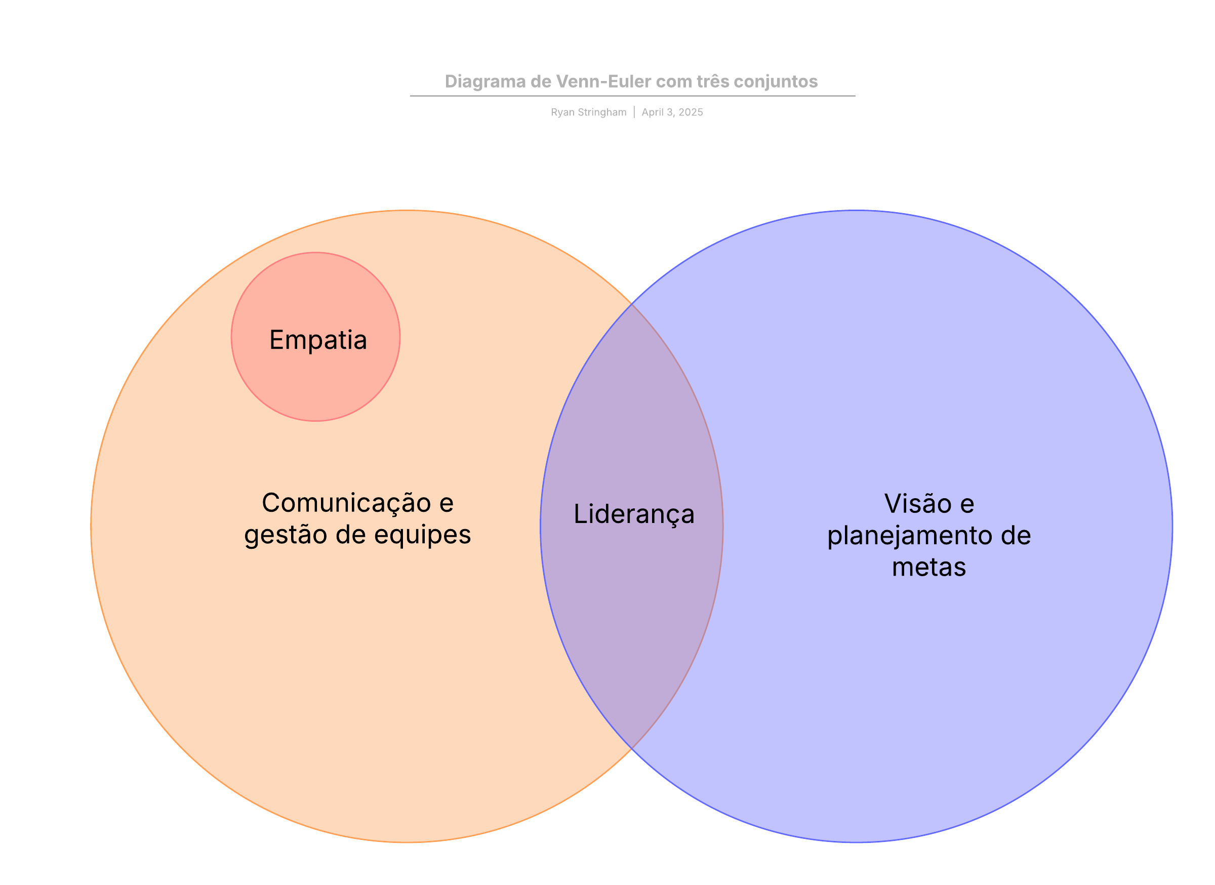 Abra este modelo para ver um exemplo detalhado de diagrama de Venn com três conjuntos, que pode ser modificado para atender às suas necessidades.