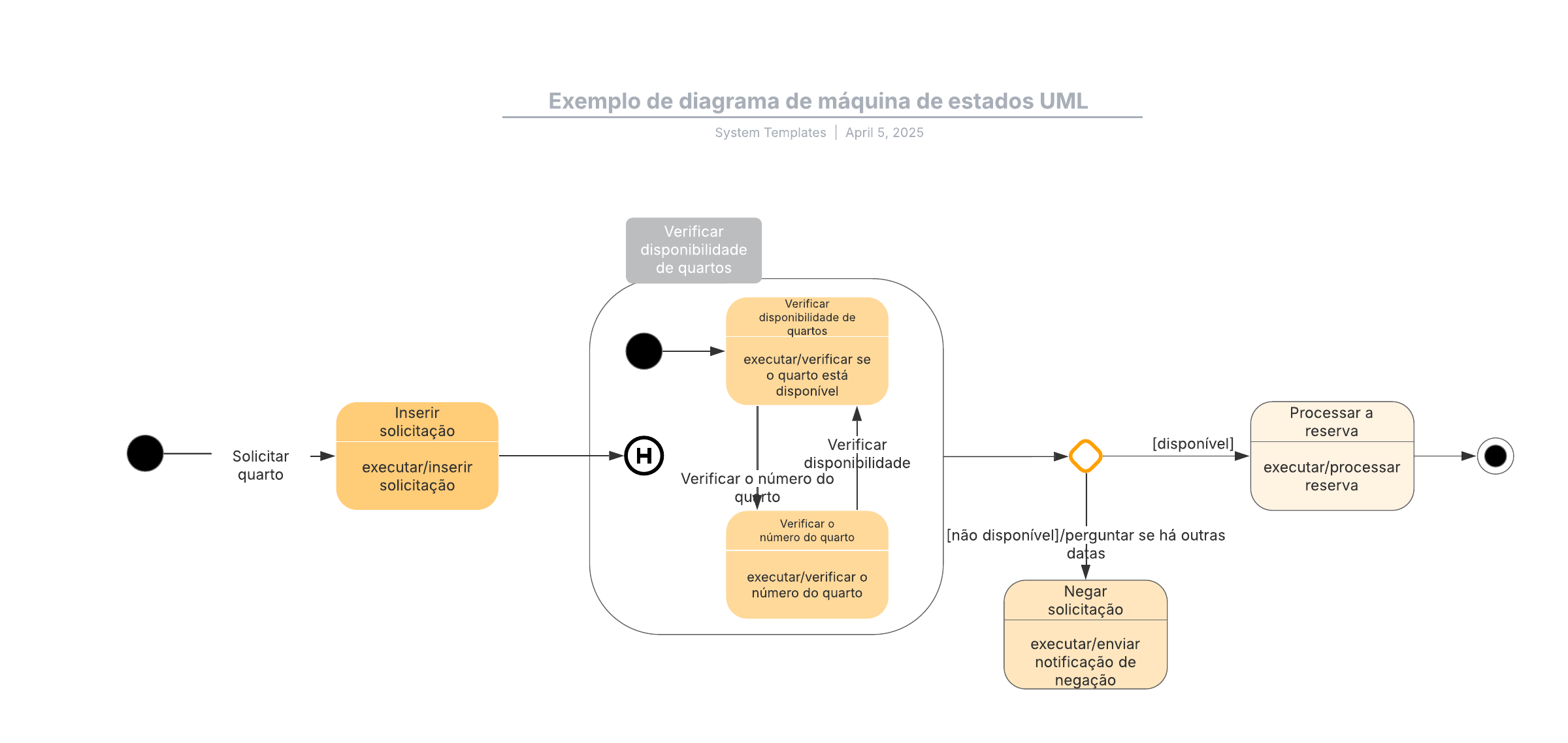 Abra este modelo para exibir um exemplo detalhado de um diagrama de máquina de estados, personalizável de acordo com seu caso de uso.