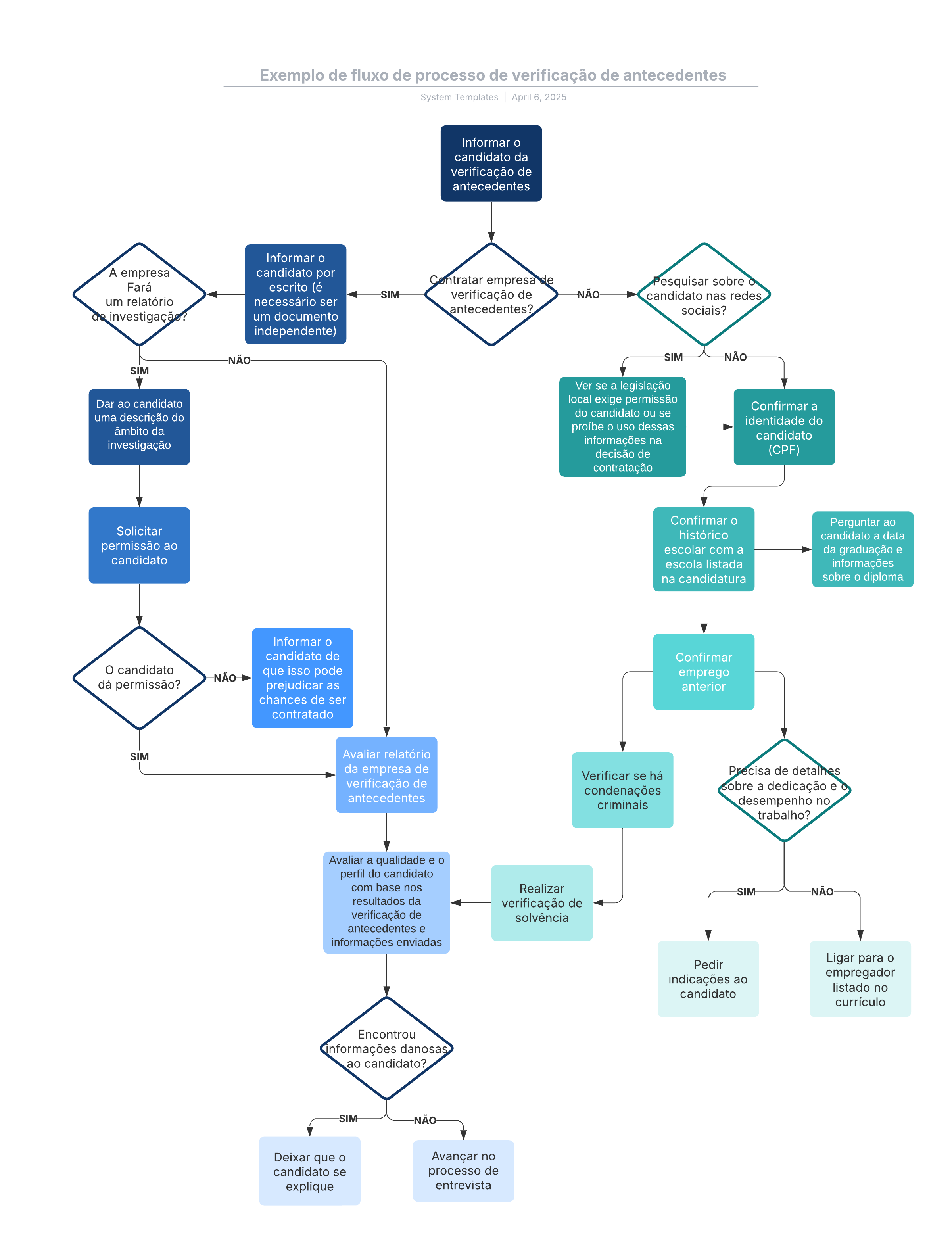 Abra este modelo para ver o exemplo detalhado de um fluxo de processo de verificação de antecedentes, personalizável de acordo com seu caso de uso.
