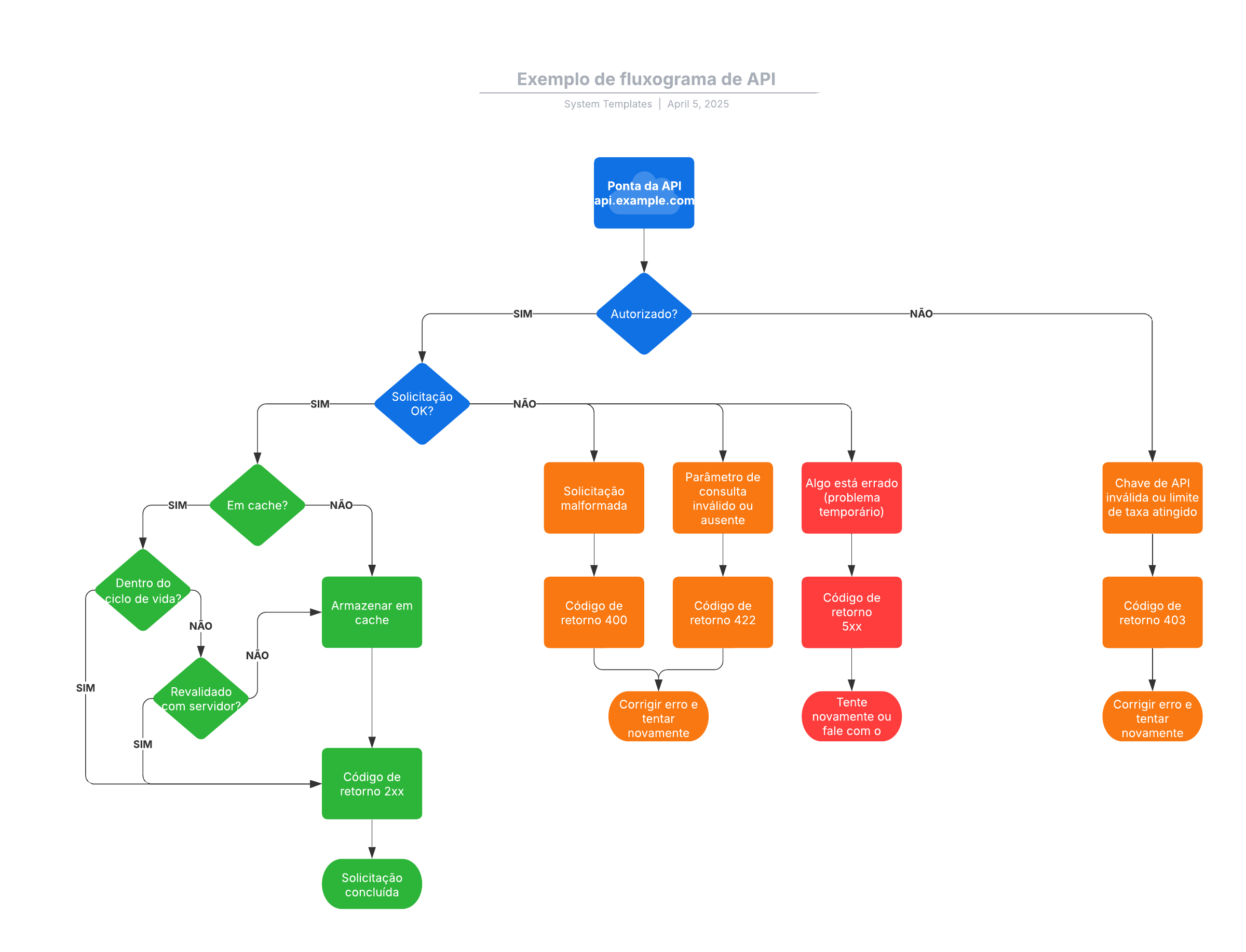 Com o template de fluxograma de API, você: