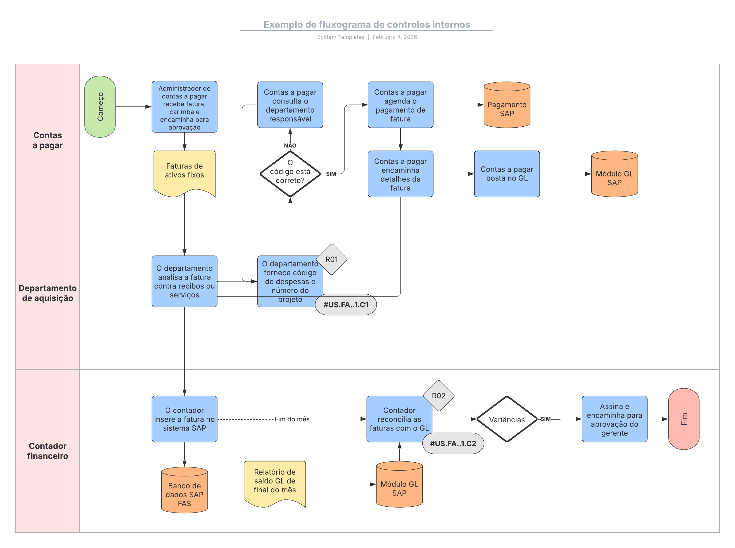 Exemplo de fluxograma de controles internos