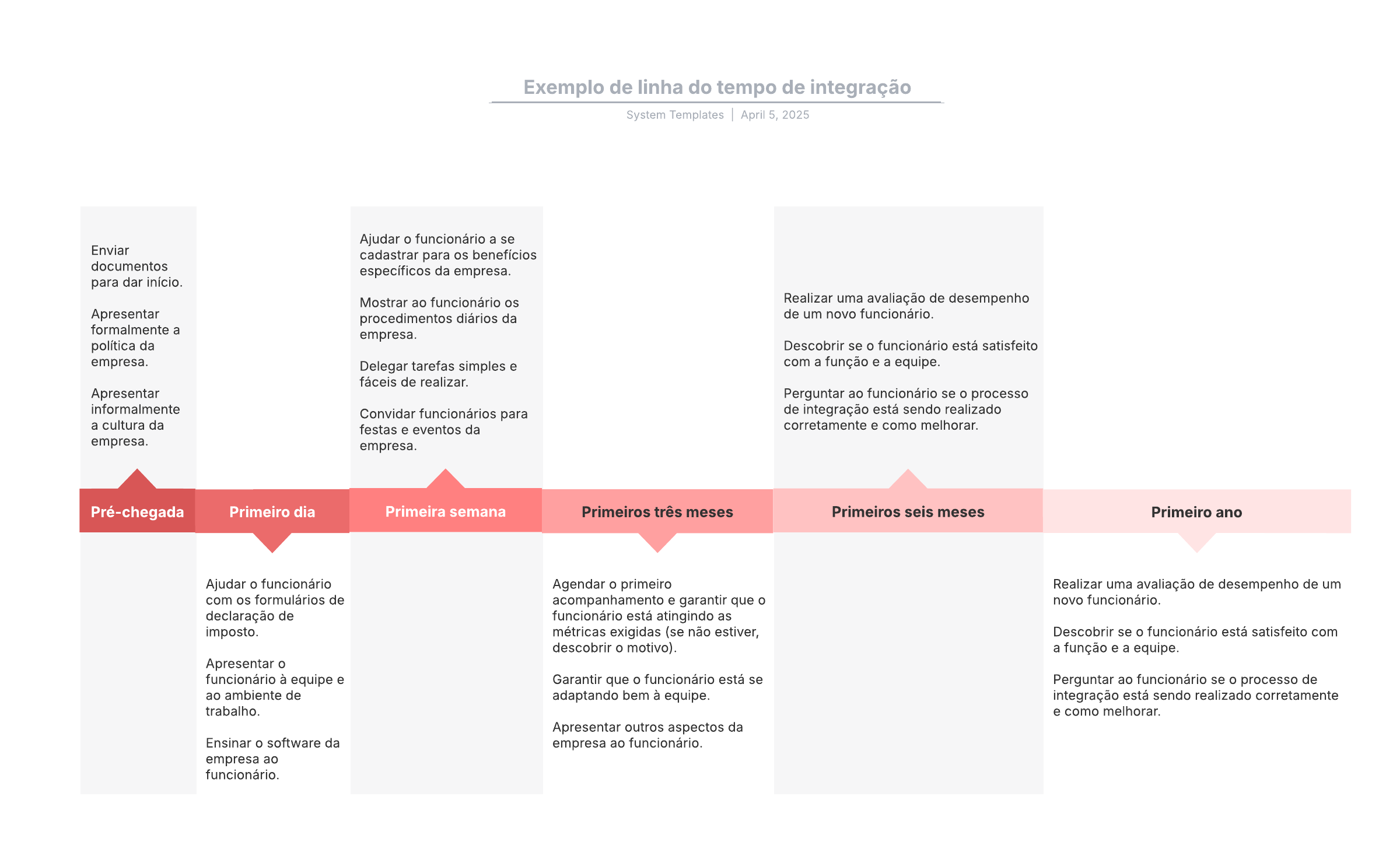 Abra este modelo para ver um exemplo de visão geral do processo de desenvolvimento de talentos, personalizável de acordo com seu caso de uso.