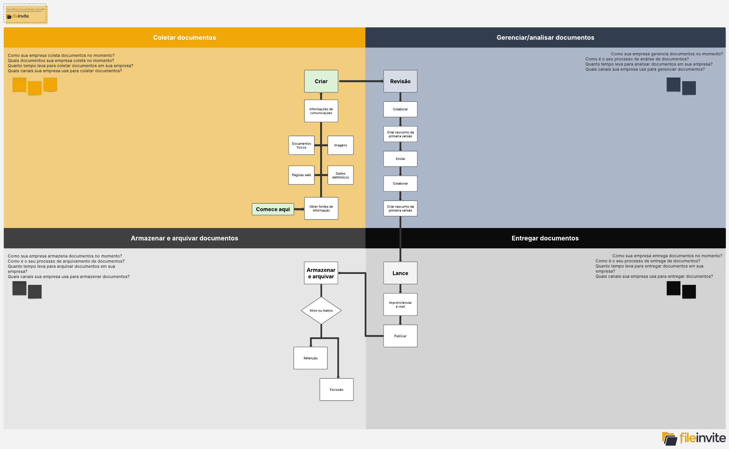 Use este modelo para analisar sua empresa e gerenciar seu fluxo de trabalho.