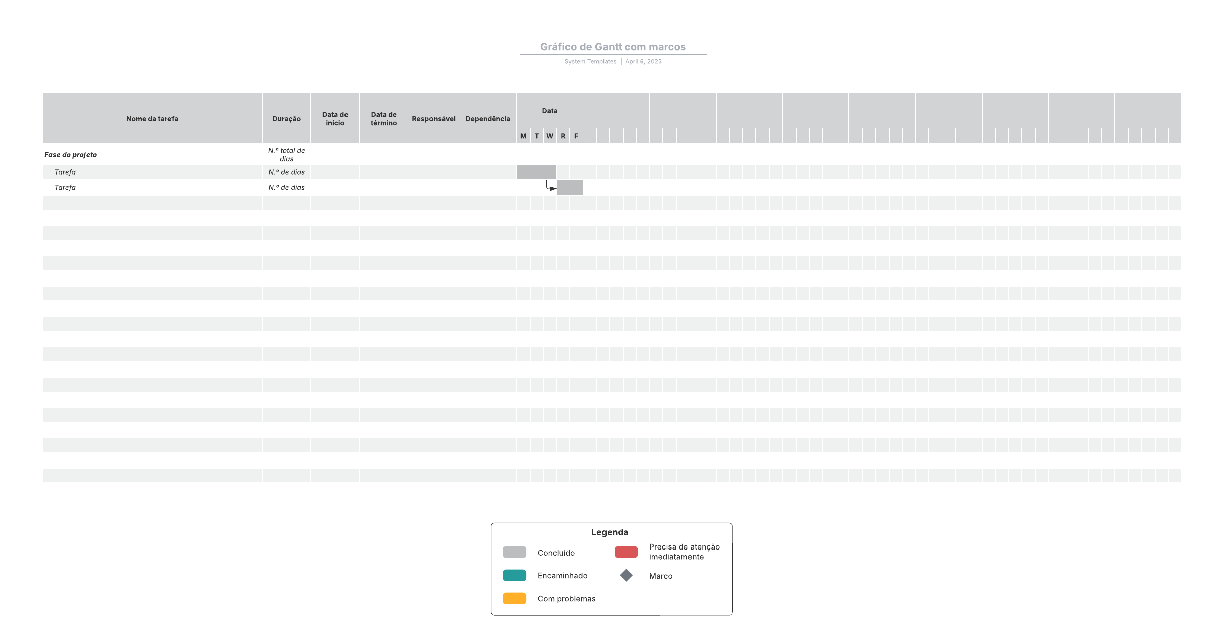 Abra este modelo e adicione conteúdo para personalizar o gráfico de gantt de acordo com seu caso de uso.