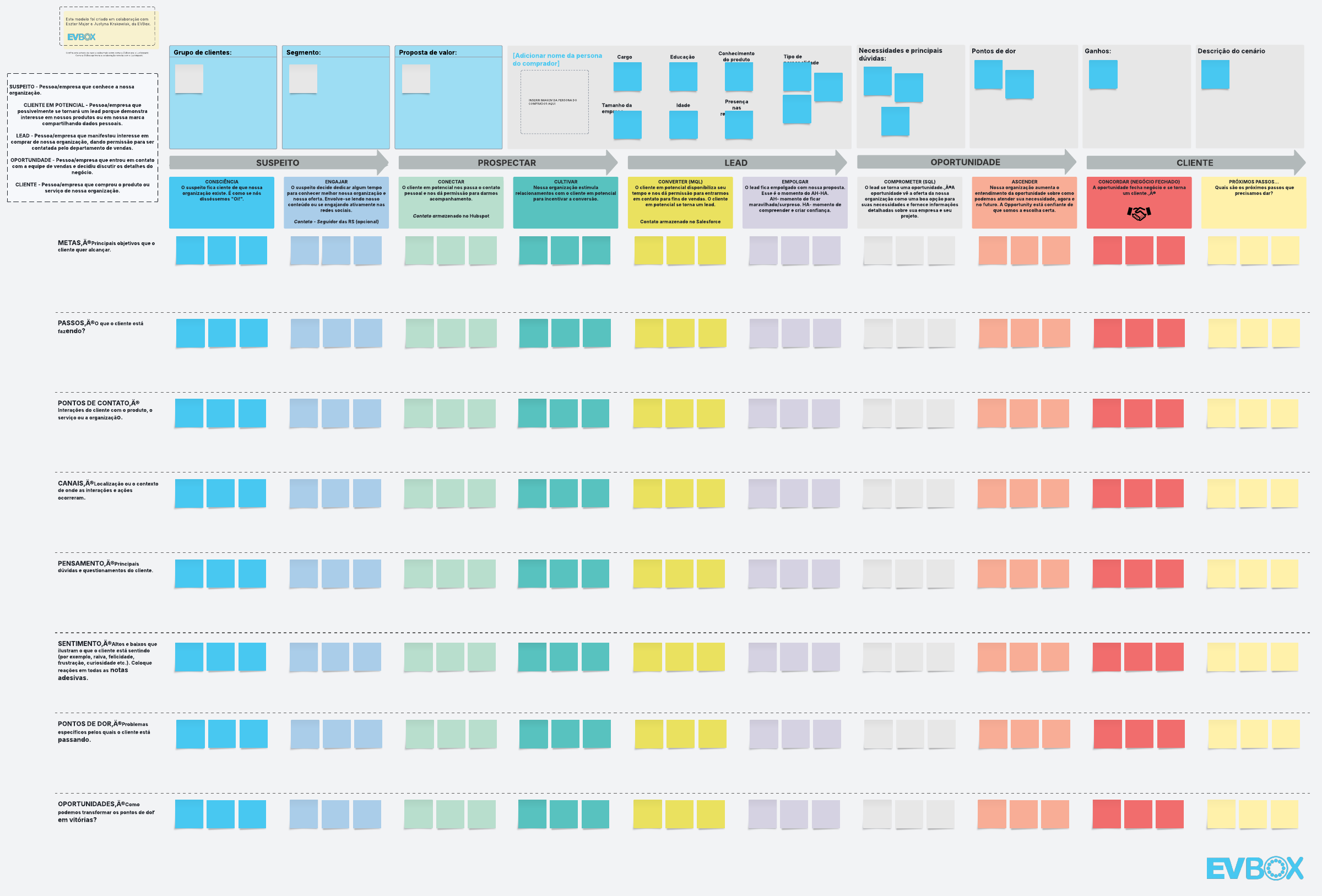 Identifique cada aspecto da jornada de uma persona do comprador com este modelo de jornada do cliente EVBox.