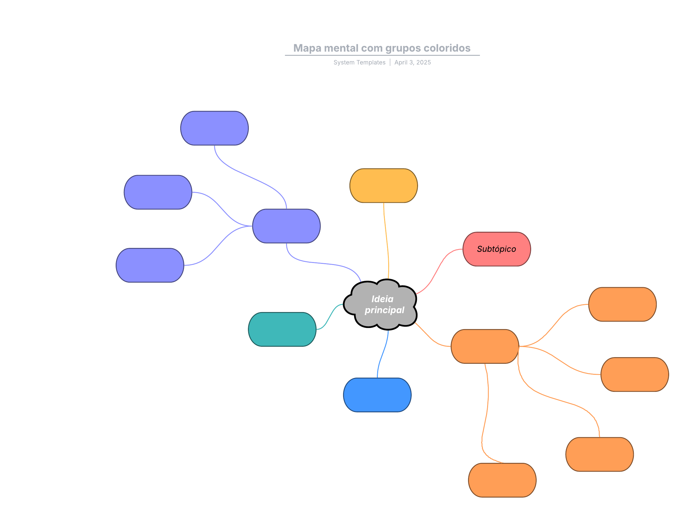 Este modelo de mapa mental para preencher com grupos coloridos pode ajudá-lo a:
