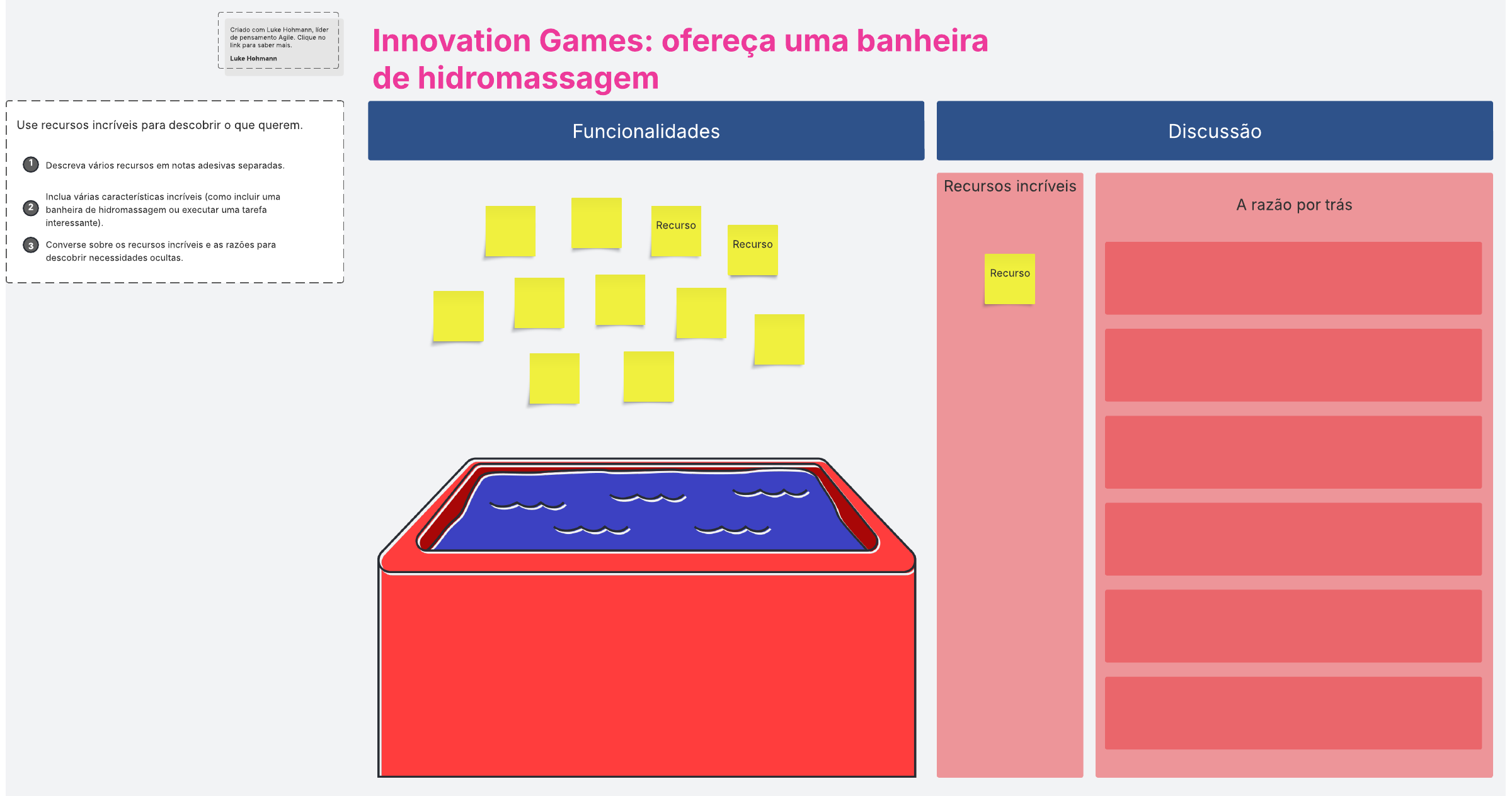 Pense fora da caixa com este modelo. Descubra quais recursos seus clientes desejam para o novo produto e descubra necessidades ainda ocultas.